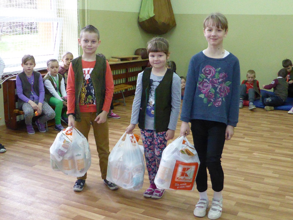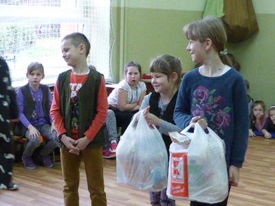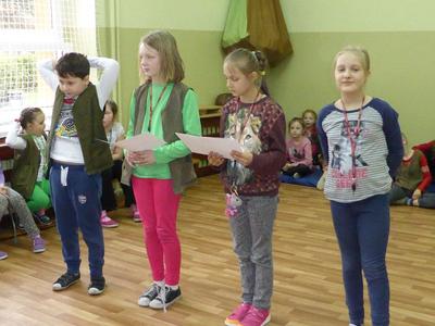 Turniej wielkanocny był podsumowaniem i zwieńczeniem projektu SK PCK trwającego prawie 3 tygodnie. W czasie zabawy uczniowie klas I-III uczestniczyli w spotkaniu wykonując różnorodne i zróżnicowane zadania - układanie puzzli, wykonywanie prac plastycznych, odgadywanie zagadek, rozwiązywanie kwizów i uczestniczenie w świątecznej pogadance. Wszyscy wesoło się bawili. W nagrodę każda klasa otrzymała ogromną paczkę zdrowej żywności sponsorowanej przez firmę KUPIEC. Dzieci były bardzo zadowolone i z ochotą smakowały ,,zdobyte” pyszności. Bardzo dziękujemy firmie za otrzymane produkty, które uatrakcyjniły spotkanie i zachęciły uczniów do kupowania potraw ww firmy.