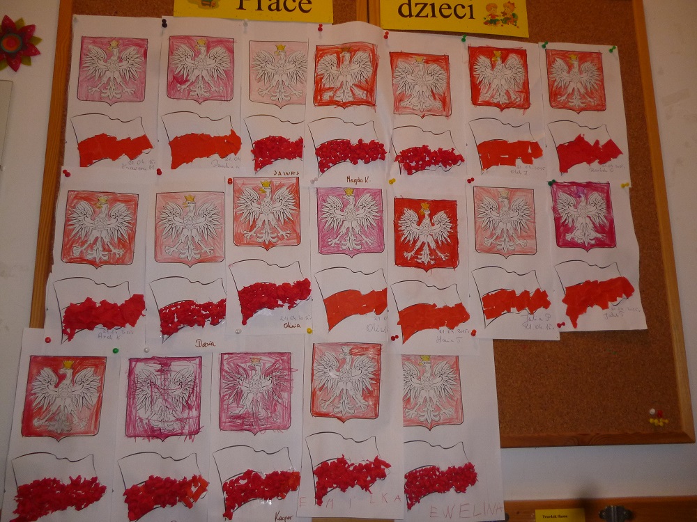W związku z obchodami Dnia Flagi Rzeczpospolitej Polskiej w ostatnich dniach kwietnia w przedszkolu w Rzuchowie podjęto szereg działań edukacyjnych z zakresu wychowania patriotycznego. Podczas zajęć dzieci poznawały swoje miejsce zamieszkania, utrwaliły symbole narodowe oraz poznały najważniejsze miejsca w Polsce. Chętnie wykonywały także różne ciekawe prace plastyczno - techniczne. Recytowały wiersz Czesława Janczarskiego „Barwy ojczyste”, śpiewały z powagą i w pozycji na baczność nasz hymn "Mazurek Dąbrowskiego". Ponadto słuchały różnych legend oraz uczyły się piosenki „Płynie Wisła, płynie”. Mamy nadzieję, że poprzez te wszystkie działania udało nam się zaszczepić w dzieciach uczucie miłości i przywiązania do własnego kraju oraz wykształcić odpowiedni stosunek do symboli narodowych.