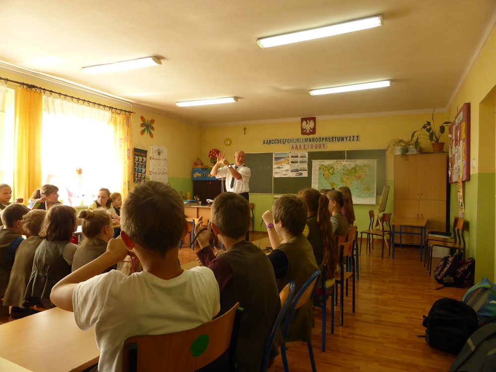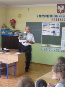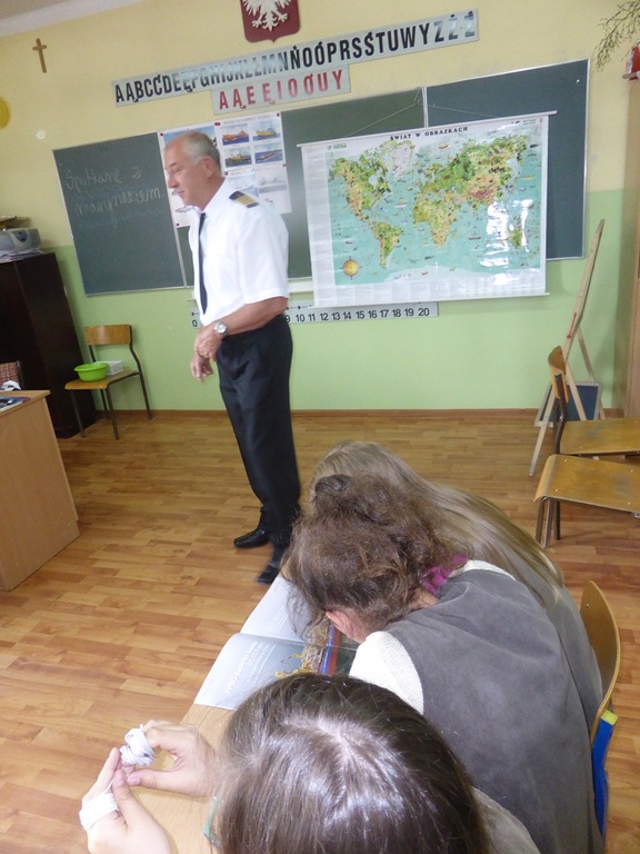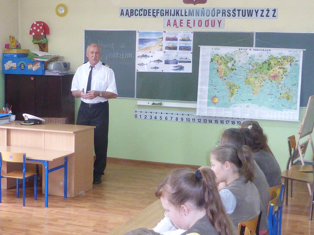 W prelekcji brała udział młodzież z klas IV-VI. Spotkanie przebiegało w miłej i sympatycznej atmosferze. Gość przybliżył dzieciom trudny, ale niezwykle ciekawy zawód marynarza. Jasno i rzeczowo nakreślił drogę, jaką trzeba przejść, aby w przyszłości zostać marynarzem, podkreślając tym samym, jak ważna jest wytrwałość, pracowitość, systematyczność w działaniu i upór w dążeniu do wyznaczonego celu. Pan Kapitan przedstawił wiele faktów z życia na morzach, a relacje były poparte ciekawymi przykładami z własnego doświadczenia. Uczniowie mieli okazję dowiedzieć się, na czym polega nawigacja morska, jakie stopnie marynarskie obowiązują wśród załogi, jakie są rodzaje statków i co jest przewożone drogą wodną. Pan Miłota bardzo dużo mówił o niebezpieczeństwie, z jakim można się spotkać w czasie pracy na morzu i jakie szkolenia przechodzić, aby móc poradzić sobie w takich sytuacjach. Swoje opowieści gość ubarwiał pokazem zdjęć i folderów. W dalszej części spotkania uczniowie zadawali pytania, na które otrzymywali wyczerpujące odpowiedzi poparte licznymi ciekawostkami i anegdotami.