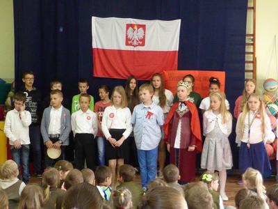Program przygotowali uczniowie klasy III, a pieśni patriotyczne zaśpiewali uczniowie klasy IV i VI. Dzieci poprzez swój program chciały przypomnieć o tym, jak ważną dla Polaków była sprawa uchwalenia konstytucji . Była ona drugą na świecie i pierwszą w Europie ustawą rządową, obejmowała swoją opieką chłopów i mieszczan, a przede wszystkim znosiła Liberum Veto.