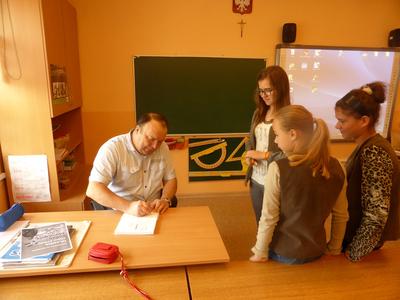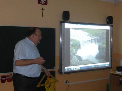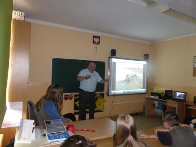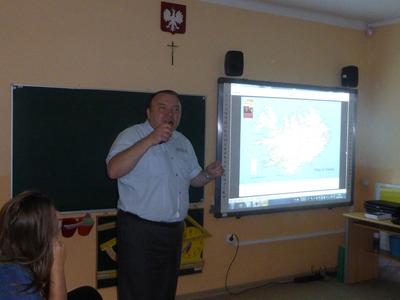 08.05.2015r. naszą szkołę odwiedził podróżnik i pisarz - Roman Pankiewicz. Podczas spotkania autor książki „Islandia – trzeci żywioł” wzbudził ogromne zainteresowanie uczniów klas IV-VI, opowiadając w niezwykle ciekawy sposób o Islandii - kraju, w którym spędził kilka lat swego życia. Swą opowieść o tej wspaniałej wyspie pan Roman wzbogacił o liczne ciekawostki i humorystyczne akcenty. Dowiedzieliśmy się, że na wyspie żyje więcej owiec niż ludzi. Zaskakujące były także informacje o tym, że w tym nordyckim kraju uprawiane są z dużym powodzeniem między innymi banany czy kawa. Jest to wszystko możliwe dzięki wykorzystaniu energii geotermalnej. Całości towarzyszyła prezentacja zachwycających zdjęć ukazujących Islandię z różnych stron: historii, przyrody, geografii, atrakcji turystycznych, infrastruktury. Szczególne ożywienie wśród widowni wywołały fotografie przedstawiające osobliwe pojazdy z czasów II wojny światowej pozostawione przez Amerykanów. Pan Roman kilkakrotnie zachęcał wszystkich naszych uczniów do nauki języków obcych, bo jak pokazał na swoim przykładzie, jest to sprawa pierwszorzędna przy podejmowaniu pracy w Europie lub podróżowaniu i poznawaniu uroków krajów europejskich. Urzekła nas piękna Islandia, życzliwość i radość życia jej mieszkańców, a spotkanie z Romanem Pankiewiczem na długi czas pozostanie w naszej pamięci.