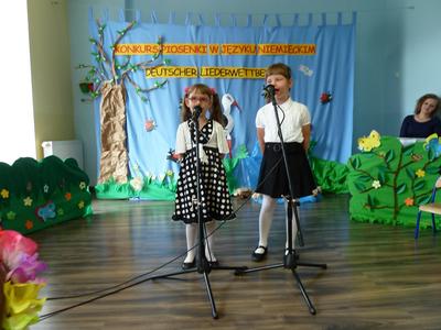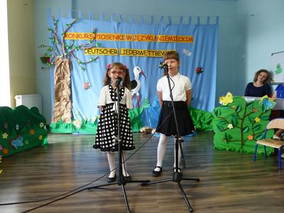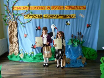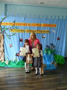 W środę 13 maja uczennice klasy pierwszej Szkoły Podstawowej w Rzuchowie: Klaudia Pieczka i Kinga Seget wzięły udział w Konkursie Piosenki w Języku Niemieckim. Dziewczynki zaśpiewały w duecie piosenkę „Es klappert die Mühle…” i zajęły II miejsce. Organizatorem konkursu było Raciborskie Centrum Opieki Nad Dziećmi Sp. z o. o. - Przedszkole „Elfik Junior”. Konkurs przeznaczony był dla dzieci w wieku przedszkolnym oraz uczniów klas I-III. Celem konkursu było m.in.: doskonalenie poprawności wymowy języka niemieckiego, zainteresowanie uczniów piosenką niemieckojęzyczną oraz rozwijanie sprawności językowych i wokalnych dzieci. Laureatkom konkursu serdecznie gratulujemy i życzymy kolejnych sukcesów.