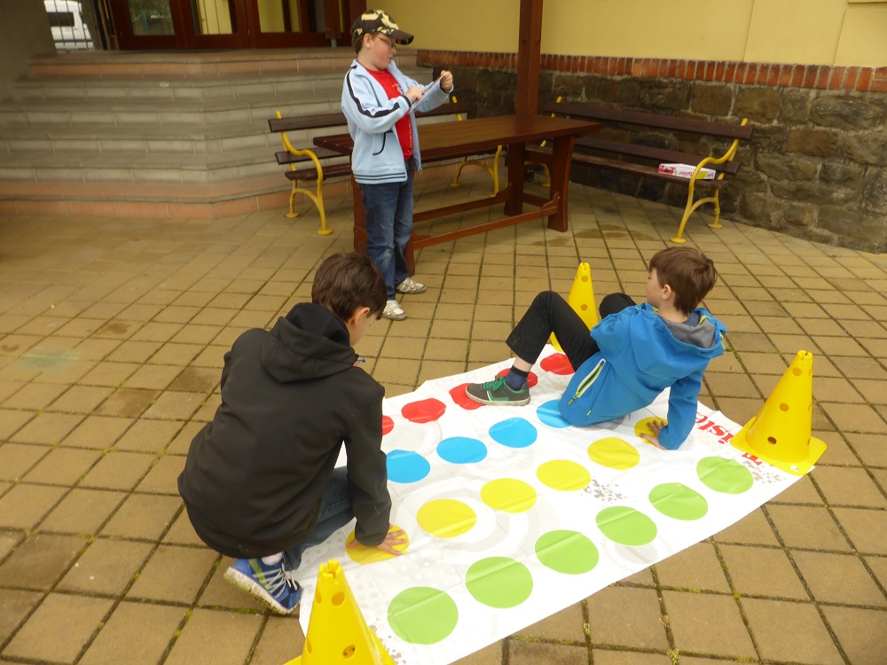 Po posiłku uczniowie integrowali się grając w badmintona, w popularną i zabawną grę Twister, jak również w różne gry zespołowe z dmuchanymi piłkami. Na zakończenie wszyscy uczniowie otrzymali nagrody za udział w zabawach.