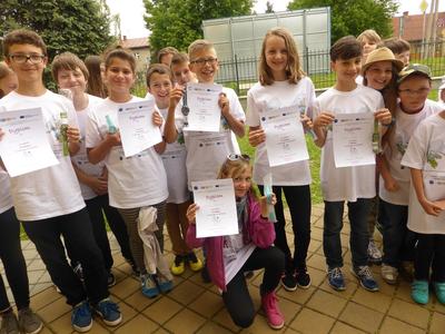 Po spacerze pojechaliśmy do naszej partnerskiej szkoły w Brance u Opavy i tam po poczęstunku zorganizowany został konkurs sportowo-zręcznościowy składający się z trzech dyscyplin: