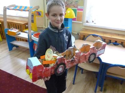 W maju przedszkole w Rzuchowie wzięło udział w III konkursie z serii Sztuka Recyklingowa pt.: "Czym się bawimy?" organizowanym przez Miejską i Powiatową Bibliotekę Publiczną im. Ryszarda Kincla w Raciborzu oraz Urząd Miasta Racibórz. Głównym celem konkursu było pogłębienie wiedzy uczestników na temat zagadnień z zakresu ekologii i ochrony środowiska oraz rozwijanie wyobraźni i fantazji. Konkurs trwał od 15 kwietnia do 23 maja 2015. Przedmiotem konkursu było zaprojektowanie i wykonanie zabawki z materiałów ekologicznych bądź surowców wtórnych w sposób bezpieczny dla użytkownika. Jak podaje organizator w konkursie wzięło udział 85 uczestników w wieku od 3 do 54 lat z Raciborza, powiatu raciborskiego, Nowej Wsi oraz Raszczyc. Jury oceniając prace wzięło przede wszystkim pod uwagę wykorzystanie surowców wtórnych, inwencję i pomysłowość podejścia do tematu oraz wrażenia estetyczne. Nasze przedszkole zdobyło w tym konkursie II miejsce. Pracę konkursową wykonał Sebastian Chroboczek, który stworzył piękny pociąg z kartonu, gazet, płyt CD oraz plastiku. Zwycięzcy serdecznie gratulujemy i życzymy dalszych sukcesów.