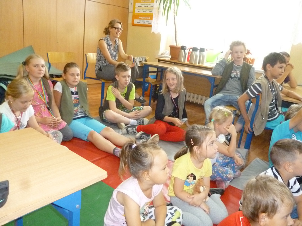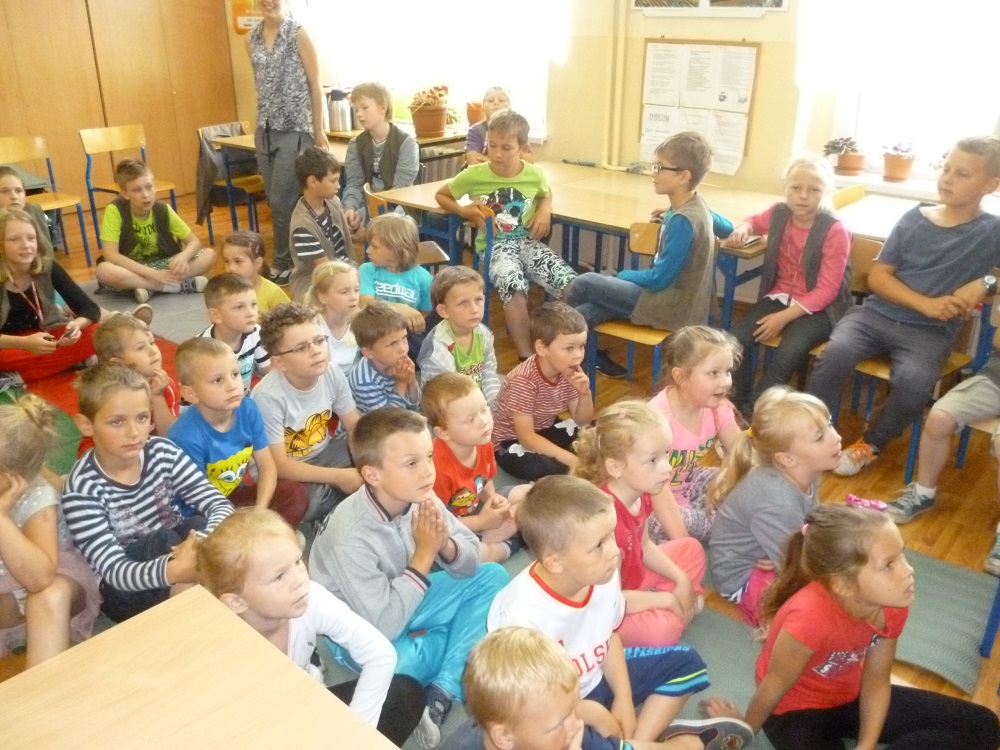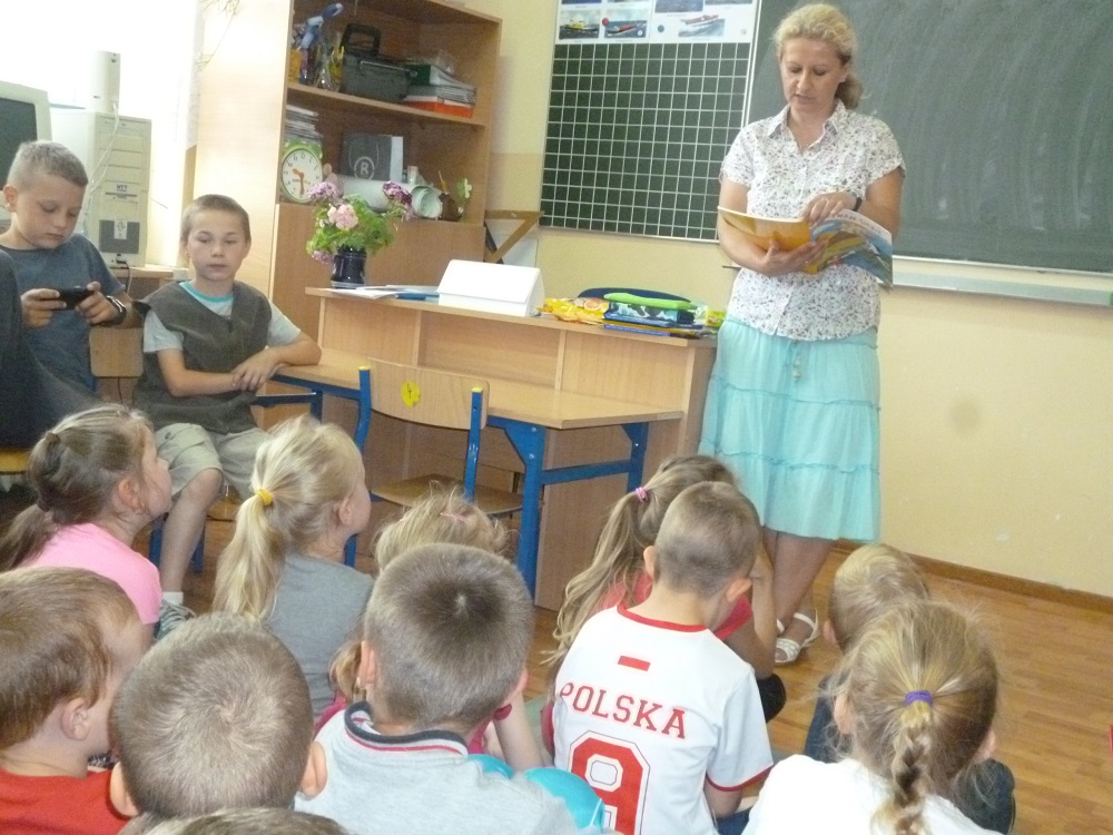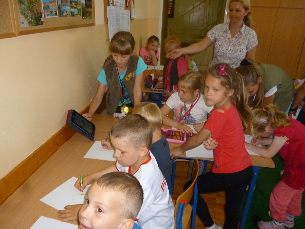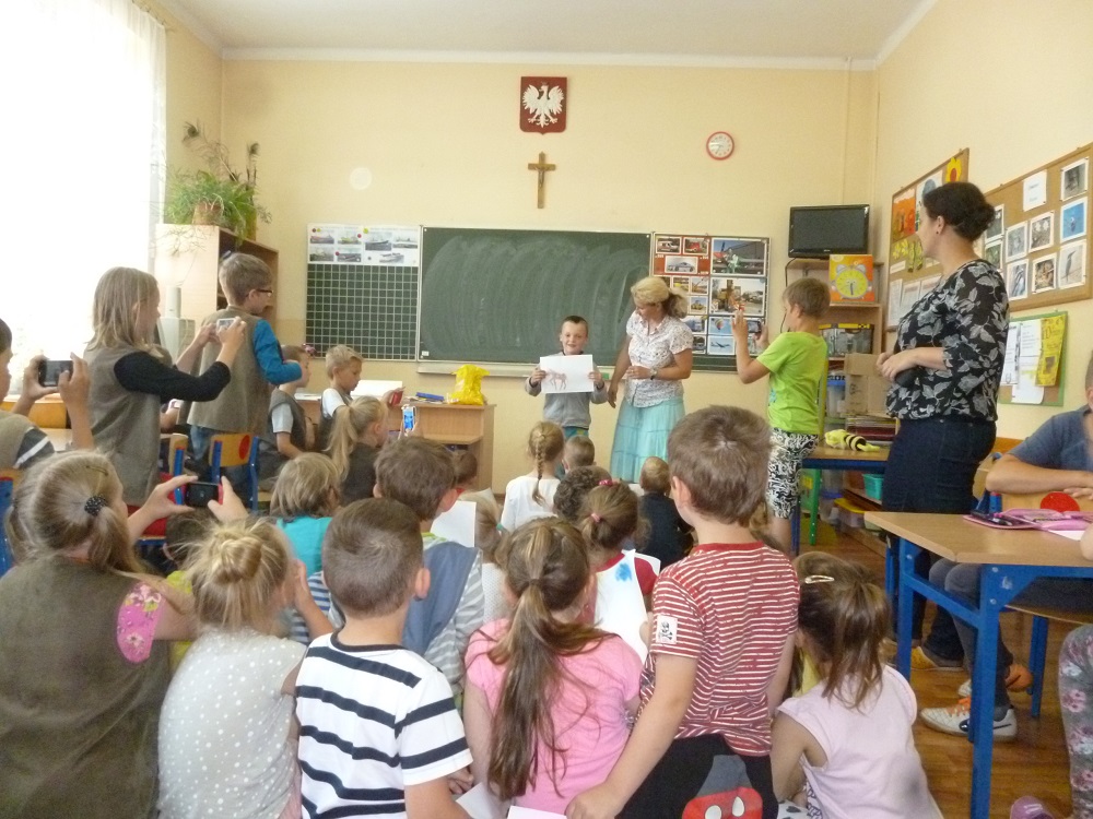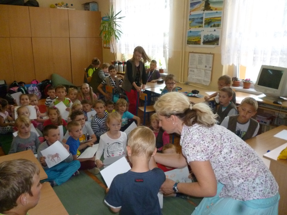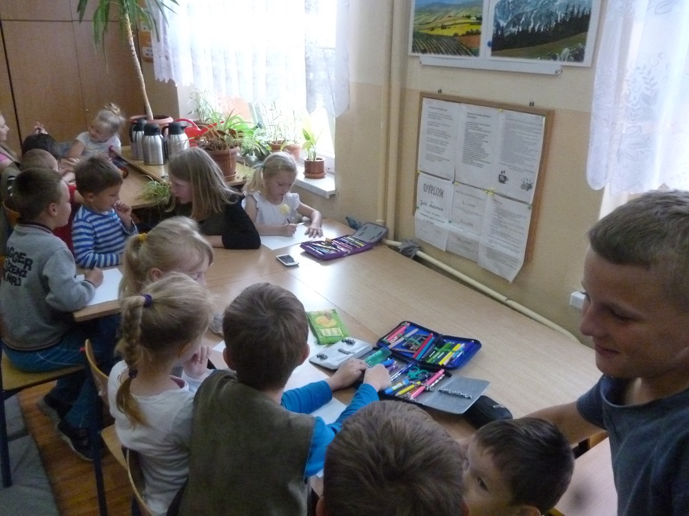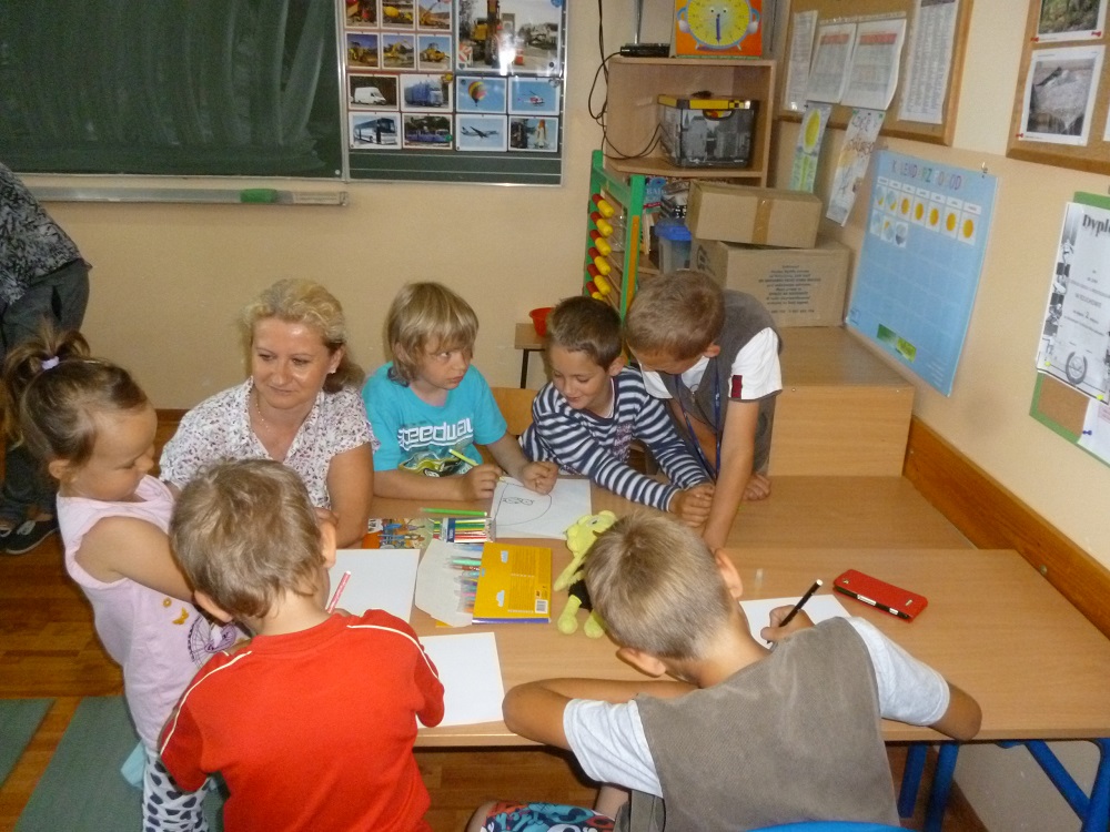 11 czerwca dzieci z przedszkola w Rzuchowie uczestniczyły w lekcji klasy III. Głównym celem zajęć było przygotowanie przedszkolaków do podjęcia nauki w szkole oraz ukształtowanie pozytywnego stosunku do szkoły, do obowiązków, do nauczycieli. Lekcja trwała 45 minut, a prowadziła ją pani Izabela Janczar. Wstępem do zajęć była rozmowa na temat ulubionych programów telewizyjnych. Następnie wysłuchaliśmy opowiadania o magicznym pudełku oraz ustaliliśmy, że telewizję należy oglądać z umiarem. Przedszkolaki aktywnie uczestniczyły w zajęciach, chętnie odpowiadały na zadawane pytania oraz zdobywały nową wiedzę. Na zakończenie spotkania dzieci wspólnie z uczniami kl. III narysowały ulubioną postać z bajki. Pani Izie wszystkie obrazki bardzo się podobały i każde dziecko za swoją pracę otrzymało słodką niespodziankę. Udział w lekcji był dla przedszkolaków niezwykle emocjonujący i interesujący.