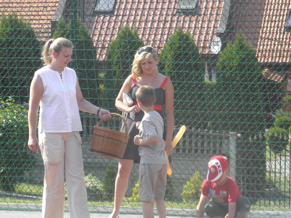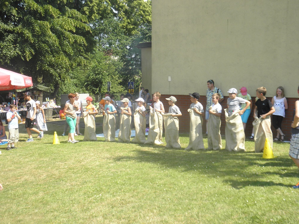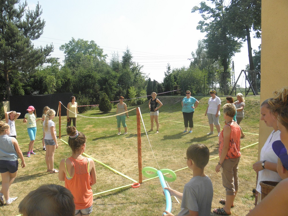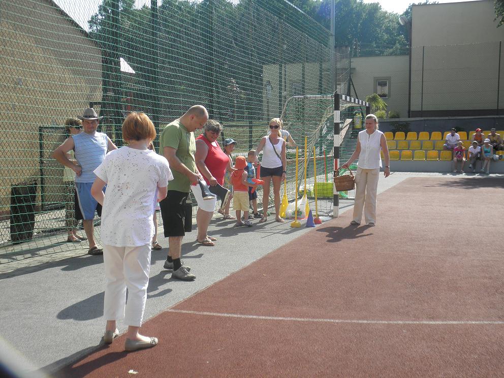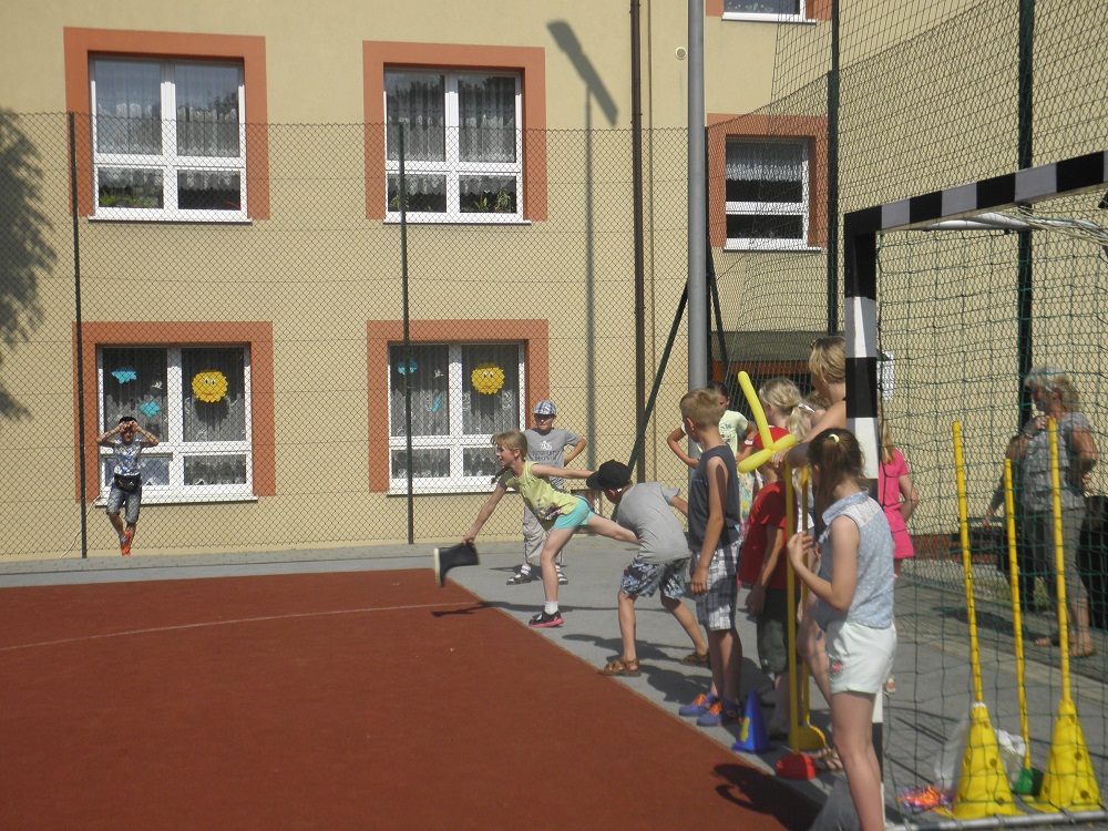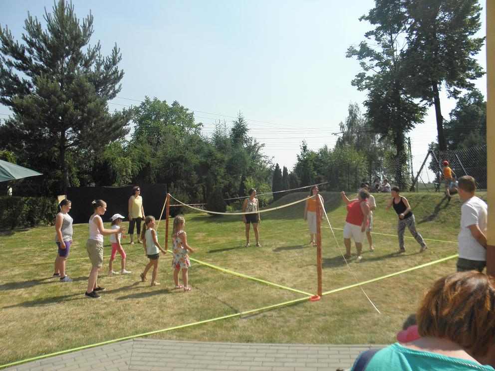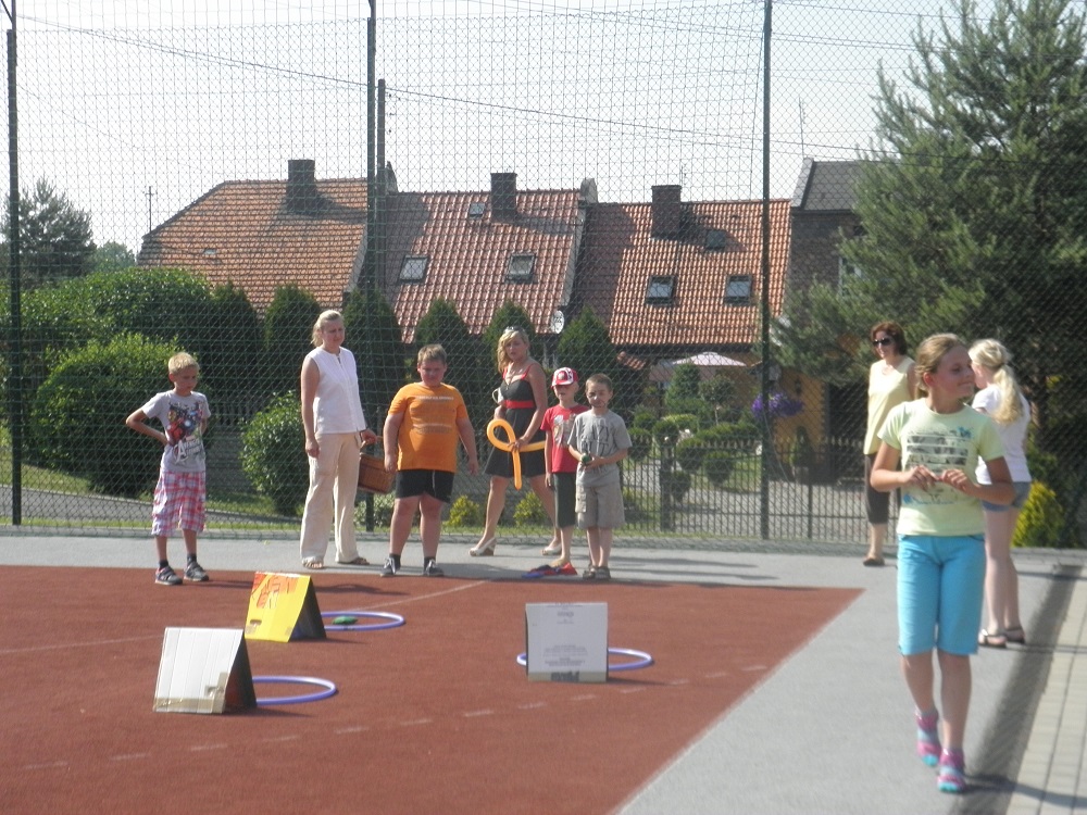 Podczas całej imprezy odbywały się różne konkurencje, np: przeciąganie liny, mecz piłki nożnej ojcowie kontra synowie, ringo dla mam i córek. Odbyły się też wyścigi w wiązaniu wstążeczki na kokardkę, bieg z kubkiem wody, rzut kaloszem, rzuty do celu, rozgrywki w przerzucaniu balona z wodą na kocu, najwolniejszy przejazd na rowerze, strzelanie z łuku do tarczy oraz konkurencja w przebieraniu grochu i fasoli. Wszyscy uczestnicy byli nagradzani drobnymi upominkami ufundowanymi przez Radę Rodziców. Atrakcją był też pokaz fitnesu, w którym mamy wraz z córkami mogły nauczyć się ciekawych kroków. Impreza mimo ogromnego upału cieszyła się dużym zainteresowaniem. Duży wybór atrakcji sprawił, że każdy uczestnik mógł znaleźć dla siebie coś odpowiedniego i cieszyć się dobrą zabawą.