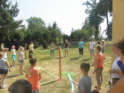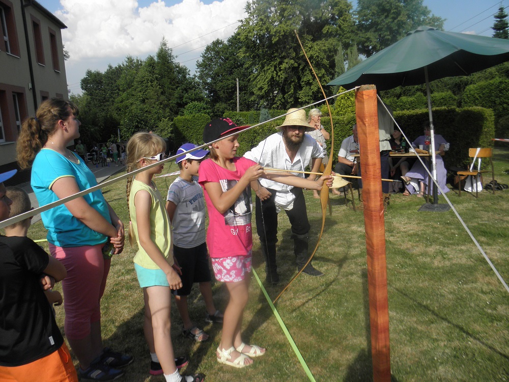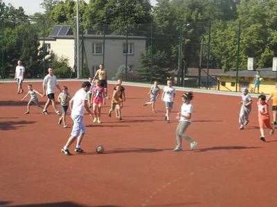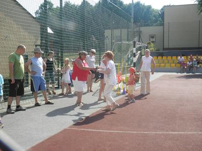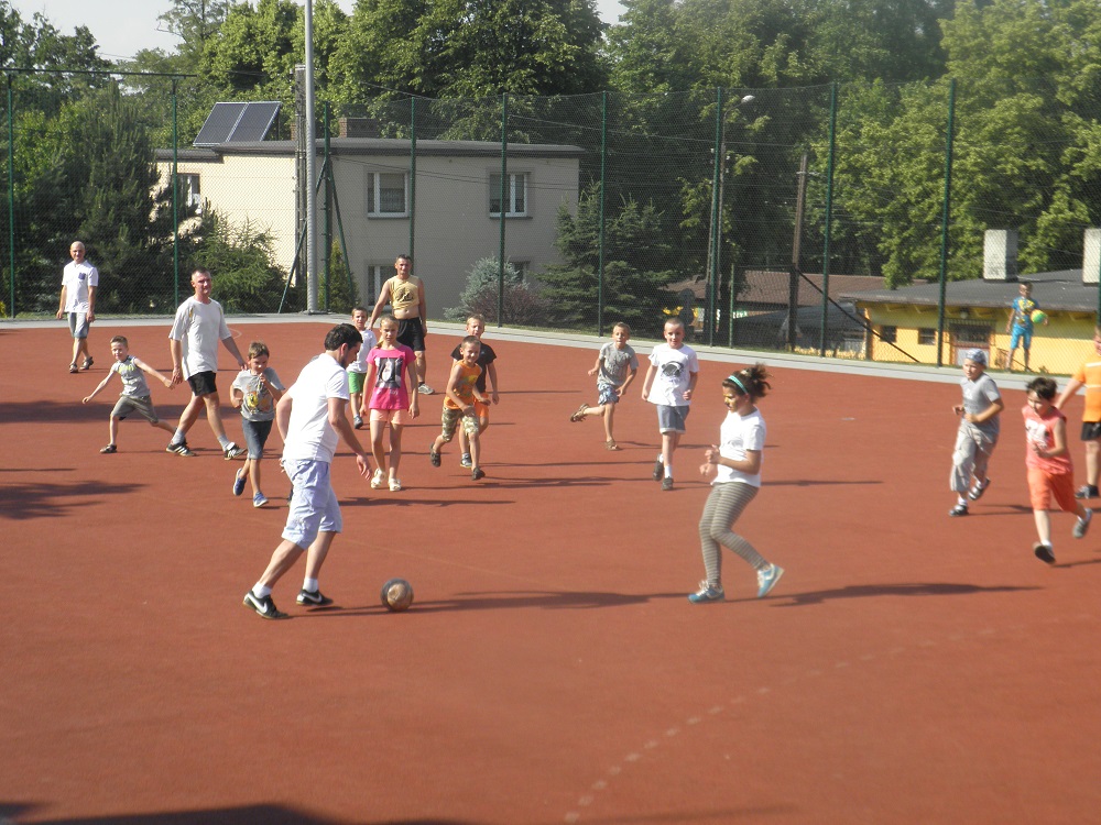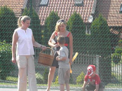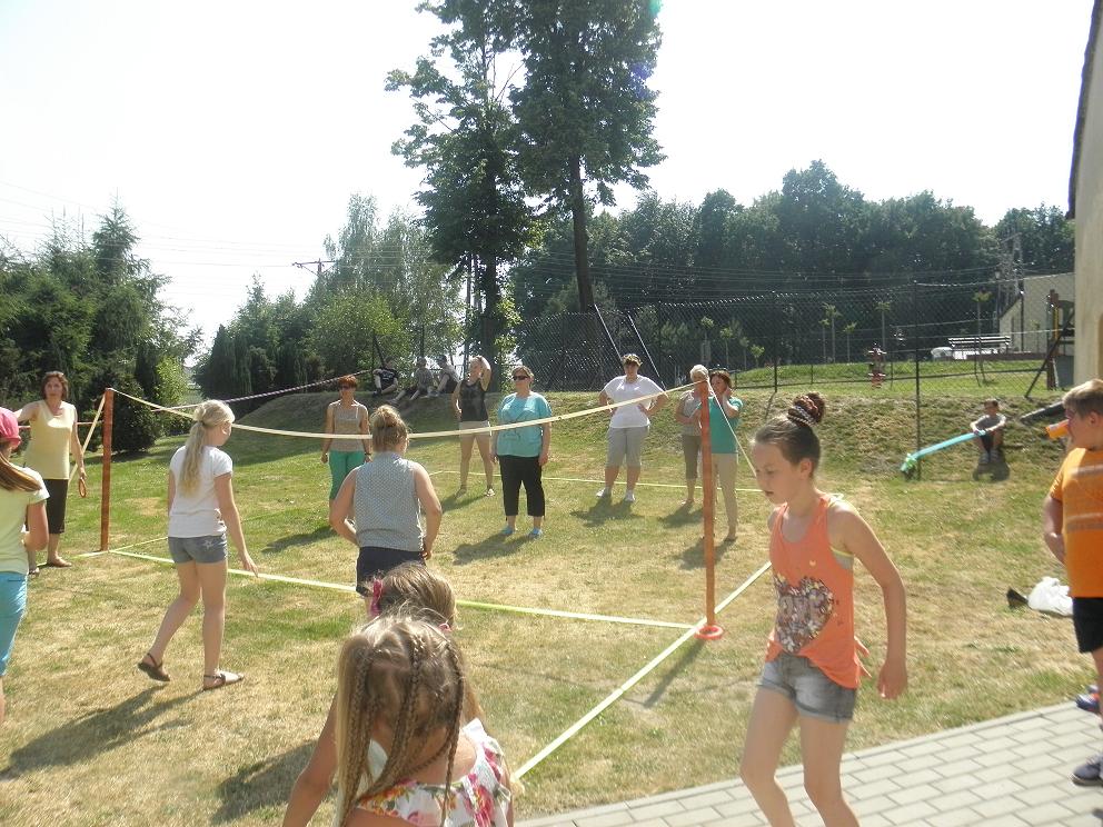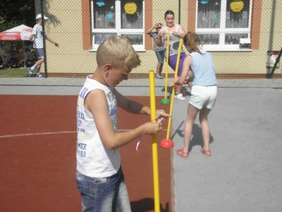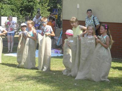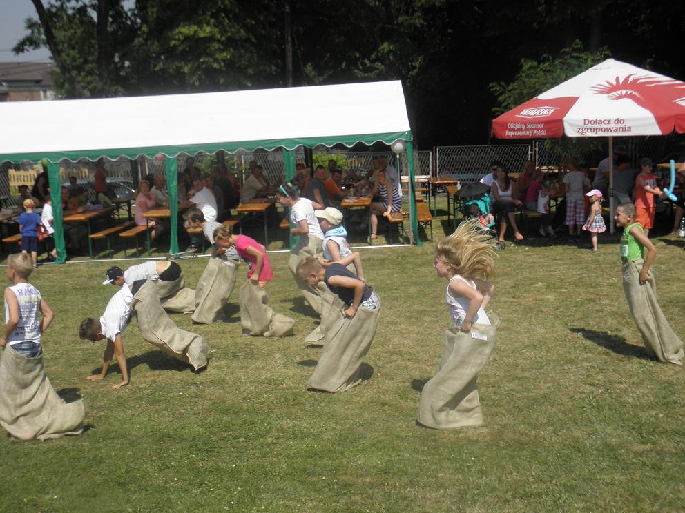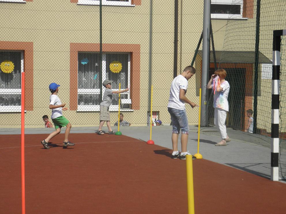Podczas całej imprezy odbywały się różne konkurencje, np: przeciąganie liny, mecz piłki nożnej ojcowie kontra synowie, ringo dla mam i córek. Odbyły się też wyścigi w wiązaniu wstążeczki na kokardkę, bieg z kubkiem wody, rzut kaloszem, rzuty do celu, rozgrywki w przerzucaniu balona z wodą na kocu, najwolniejszy przejazd na rowerze, strzelanie z łuku do tarczy oraz konkurencja w przebieraniu grochu i fasoli. Wszyscy uczestnicy byli nagradzani drobnymi upominkami ufundowanymi przez Radę Rodziców. Atrakcją był też pokaz fitnesu, w którym mamy wraz z córkami mogły nauczyć się ciekawych kroków. Impreza mimo ogromnego upału cieszyła się dużym zainteresowaniem. Duży wybór atrakcji sprawił, że każdy uczestnik mógł znaleźć dla siebie coś odpowiedniego i cieszyć się dobrą zabawą.