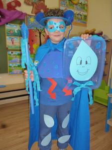 W tym roku szkolnym przedszkolaki z Rzuchowa już po raz kolejny wzięły udział w programie edukacyjnym „Mamo, Tato, wolę wodę”, który został zainicjowany przez Żywiec Zdrój S.A. w 2009 roku. Nadrzędnym celem tego programu jest zachęcenie dzieci do picia wody, która jest niezbędnym elementem zrównoważonej diety oraz wspieranie rodziców w kształtowaniu prawidłowych nawyków żywieniowych u swoich pociech. W ramach kampanii „Mamo, Tato, wolę wodę” zachęcaliśmy dzieci do picia wody, prowadziliśmy wodne eksperymenty, rysowaliśmy plakaty promujące oszczędzanie wody, omówiliśmy obieg wody w przyrodzie, bawiliśmy się w różne zabawy dydaktyczne i tematyczne związane z wodą, ćwiczyliśmy, sadziliśmy rośliny, które potem podlewaliśmy, oglądaliśmy bajeczki, których głównym bohaterem był Zdrojek oraz zorganizowaliśmy Światowy Dzień Wody. Ponadto wzięliśmy udział w konkursie, którego głównym zadaniem było stworzenie stroju wodnego Superbohatera. Dzieci z wielkim zaangażowaniem pomagały w projektowaniu oraz mierzeniu kostiumu, który sfotografowaliśmy, opisaliśmy i wysłaliśmy organizatorowi. Wszystkie podejmowane przez nas działania w ramach programu „Mamo, Tato, wolę wodę” były bardzo ciekawe i cieszyły się ogromnym zainteresowaniem ze strony przedszkolaków.