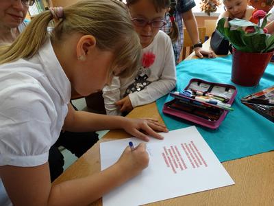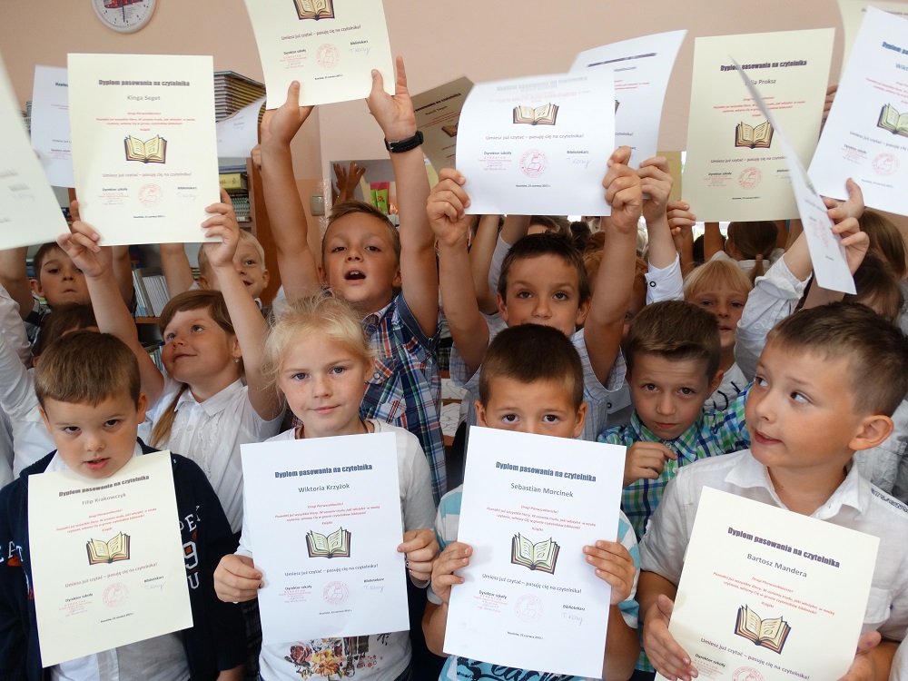 Uroczyste pasowanie pierwszoklasistów na czytelników biblioteki