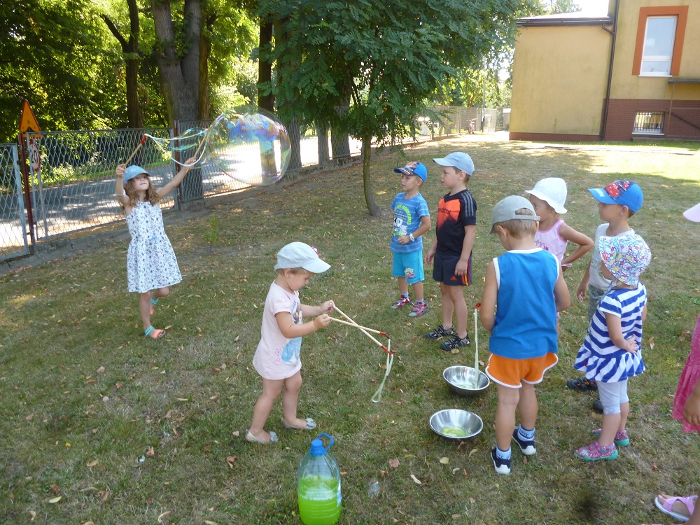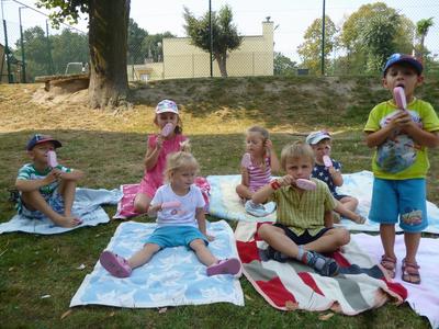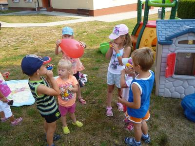 Wakacje kojarzą się wszystkim z upalnym latem oraz wesołymi zabawami i przygodami, dlatego też przygotowaliśmy mnóstwo atrakcji dla dzieci, które 6 sierpnia zawitały w przedszkolu w Rzuchowie. Podczas pobytu w naszej placówce przedszkolaki rysowały, słuchały wierszy, oglądały bajki, korzystały z sali gimnastycznej oraz miały możliwość swobodnej zabawy w kącikach zainteresowań. Często też wychodziły na plac zabaw i do ogrodu, aby w cieniu drzew pobawić się piłkami, skakankami, chustą animacyjną, balonami czy bańkami mydlanymi. Domagały się też spacerów do parku, gdzie mogły pokonywać tory przeszkód, zbierać żołędzie i bawić się suchymi patykami. Dużą atrakcją była także fontanna, która dostarczała dzieciom ochłody w czasie upałów. I tak wakacje powoli dobiegły końca. Mamy nadzieję, że wszystkie dzieci będą mile wspominały czas spędzony na wspólnej zabawie w naszym przedszkolu.