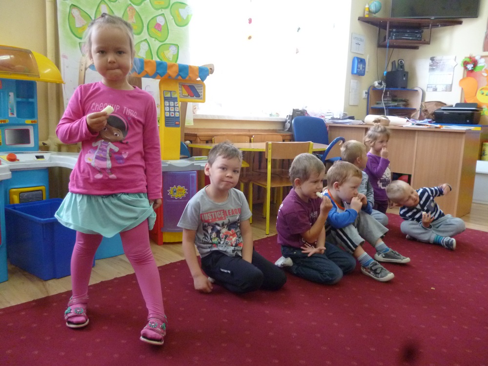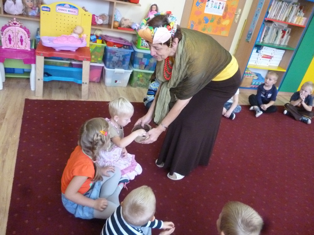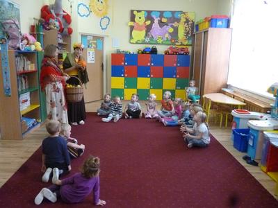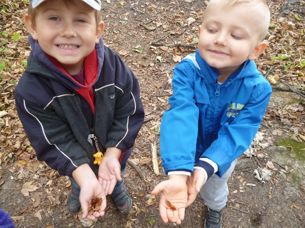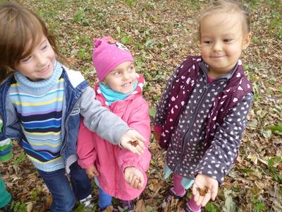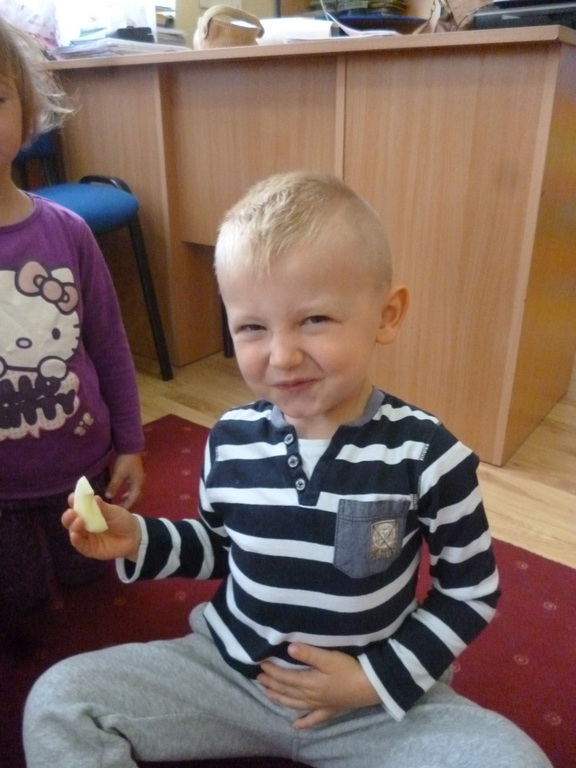 23.09.2015 r. do przedszkola w Rzuchowie przyszła pani Jesień, która przyniosła ze sobą kosz pełen owoców i warzyw. Przedszkolaki chętnie nazywały dary jesieni, dzieliły te wyrazy na sylaby i wyodrębniały w nich pierwszą głoskę. Następnie przedszkolaki bawiły się z panią Jesienią w kole śpiewając piosenki oraz częstowały się owocami poznając różne smaki, zwłaszcza słodki i kwaśny. Dowiedziały się przy tym, że owoce należy zjadać ze względu na zawarte w nich witaminy. Dzieci ozdobiły jeszcze sukienkę dla pani Jesieni, a potem poszły na spacer poszukać jej oznak w parku, gdzie dużą atrakcją okazały się orzeszki z buczyny, które dzieci wyszukiwały wśród opadłych liści.