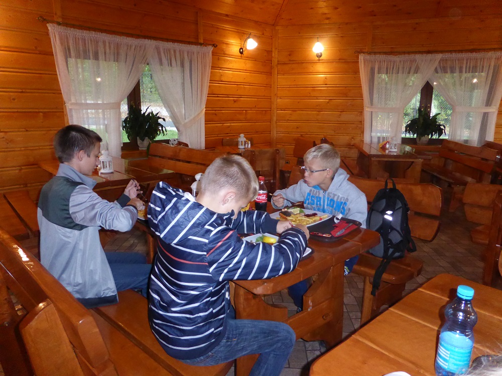 Pieszy rajd rozpoczęliśmy w Rzuchowie, skąd przeszliśmy leśnym szlakiem do "Rybaczówki" w Pstrążnej. Po wyczerpującym, ale przyjemnym wysiłku czekały na nas pieczone rybki i inne atrakcje. W świetnych nastrojach wyruszyliśmy w powrotną drogę podziwiając piękno otaczającej nas przyrody przybranej w szaty jesieni. Była to bardzo udana wyprawa, a przy okazji aktywnie i wesoło spędzony czas na świeżym powietrzu.
