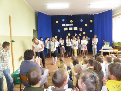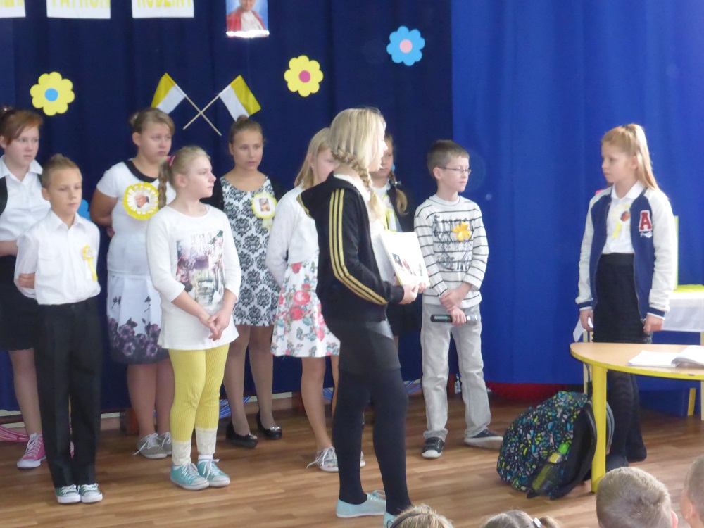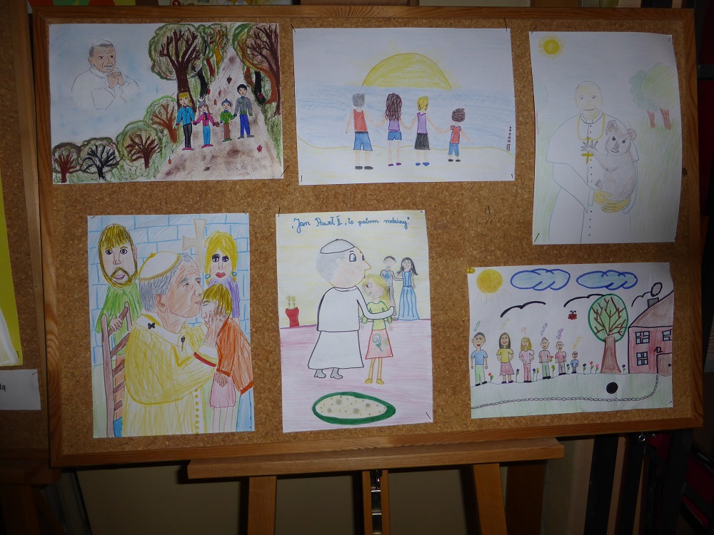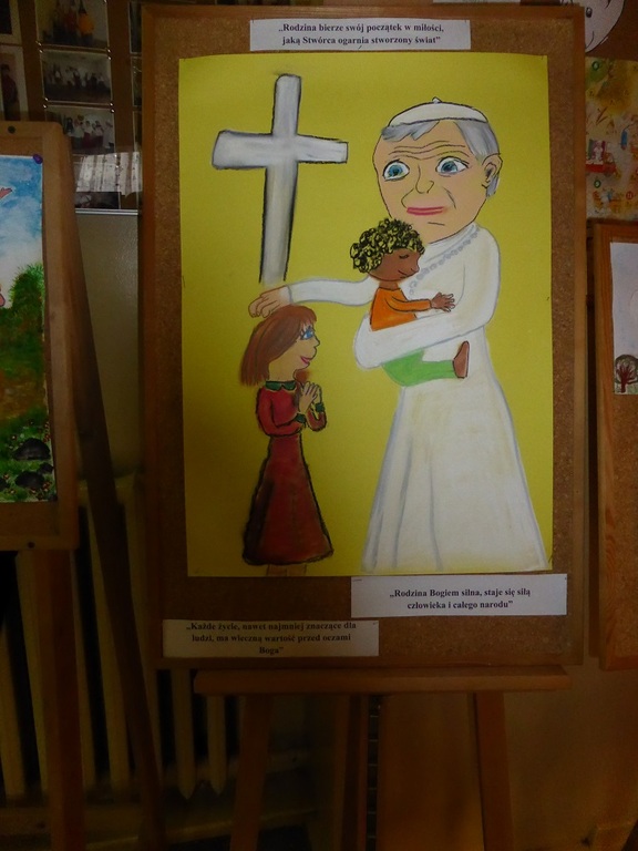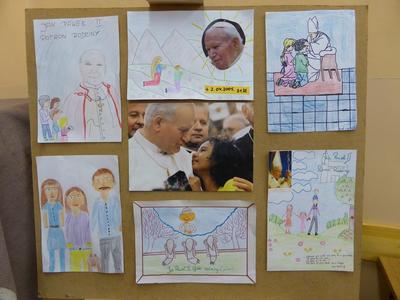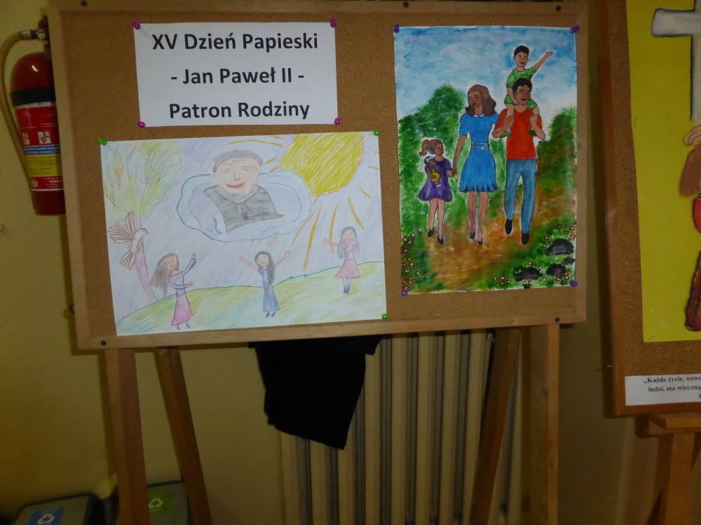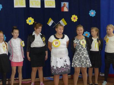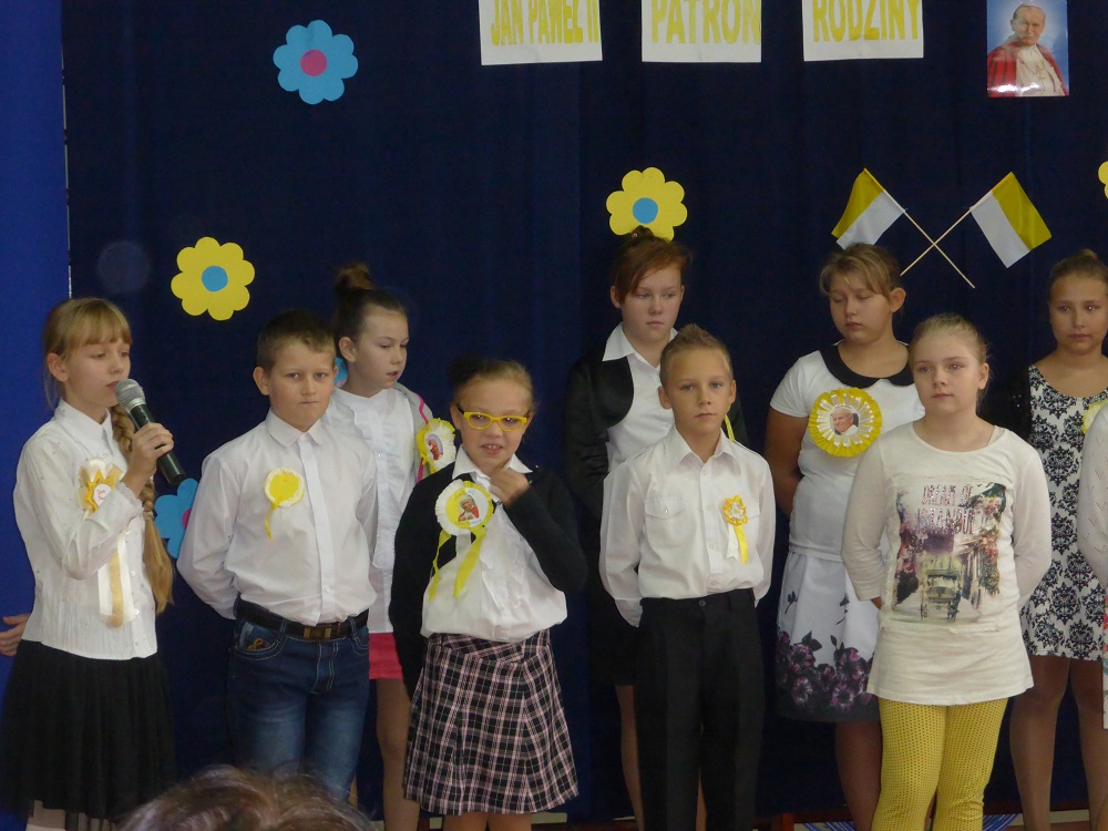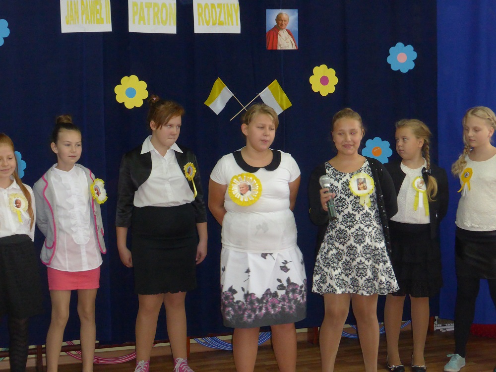 Program artystyczny był tylko jedną z części uroczystego spotkania. Kolejną częścią było rozstrzygnięcie konkursu plastycznego "Jan Paweł II - Patron Rodziny" i krótki konkurs wiedzy o życiu Świętego Papieża. W konkursie plastycznym I miejsce zdobyła Nikola Seget, II - Ewa Adamczyk, III - Wiktoria Poręba. Natomiast w konkursie wiedzy uczestniczyli wszyscy uczniowie, a ci, którzy odpowiedzieli poprawnie, zostali nagrodzeni cukierkami. Bardzo bogatą wiedzą wykazał się Wiktor Karasiewicz.