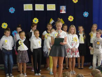 "Jan Paweł II - Patron Rodziny" - to temat XV Dnia Papieskiego, który obchodziliśmy w szkole 16 października. Nasze serca wypełniła radość i wdzięczność Bogu za życie Papieża Polaka i jego nauczanie. W programie słowno - muzycznym uczniowie klasy IV, V i VI przekazali ważne słowa Jana Pawła II dotyczące wartości rodziny i jej roli w życiu społecznym oraz zwracania się do niego jako patrona rodzin. Na zakończenie programu cała społeczność szkolna uroczyście zaśpiewała pieśń pt. "Barka".