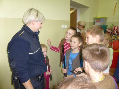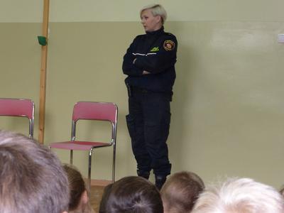 W ZSP w Rzuchowie w dniu 19.10.2015 r. odbyło się spotkanie z przedstawicielem Straży Miejskiej z Raciborza dotyczące bezpiecznego poruszania się z domu do szkoły. Informacje i wskazówki przekazane dzieciom przez funkcjonariuszkę okazały się bardzo ważnymi i cennymi radami. Dotyczyły one bezpiecznych i przezornych zachowań, które towarzyszą nam zanim dotrzemy do szkoły. Rozmawiano o pozostawieniu domu z zamkniętymi oknami i drzwiami oraz z wyłączonym sprzętem. Nie brakło przestróg przed złodziejami. Mówiono o przechowywaniu kluczy w niewidocznym miejscu, o poruszaniu się we właściwy sposób czy niewdawaniu się w rozmowy z nieznajomymi osobami. Został poruszony również problem bezpańskich psów i sposobu reagowania na ich atak. Na koniec funkcjonariuszka przekazała ważne zasady poruszania się po drogach, zachowania dla rowerzystów, pieszych i uczniów w szkole, np. podczas przerw. Najmłodsi uczestnicy zadawali wiele pytań dotyczących agresji, brzydkich zachowań i żartów wobec innych osób. Na zadawane przez dzieci pytania funkcjonariuszka starała się udzielić odpowiedzi.