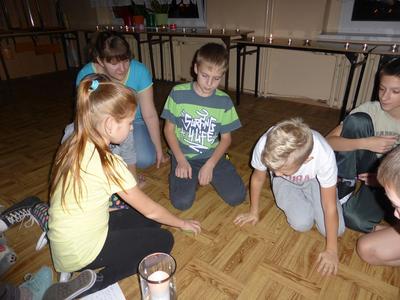 Z 20 na 21 listopada pod czujnym okiem opiekunów siedemnastu uczniów klas V i VI (członków szkolnego kółka turystycznego "Żuczki") uczestniczyło w Nocy Andrzejkowej zorganizowanej w szkole. Spotkanie rozpoczęło się o godzinie 19:00 i trwało aż do 7:00. Nikt nie zmrużył oka w ciągu trwania tej świetnej imprezy. Po rozlokowaniu się rozpoczęto przygotowania do dyskoteki połączonej z wróżbami andrzejkowymi. W magiczny nastrój wprowadziło nas udekorowanie sali świecami oraz nastrojowa muzyka. Podczas zabawy odbyły się różne wróżby andrzejkowe, które dostarczyły wiele radości i pozwoliły poznać przyszłość, oczywiście z przymrużeniem oka. Wszystkie wróżby wymyśliły i przygotowały uczennice klasy V. Było bardzo wesoło. Do samego rana oglądaliśmy trzy wybrane filmy. Taką noc w szkole zapamiętamy na bardzo, bardzo długo. Po krótkiej nocy w sobotni poranek pełni wrażeń i pozytywnych emocji rozchodziliśmy się do domów planując kolejne ciekawe spotkanie.