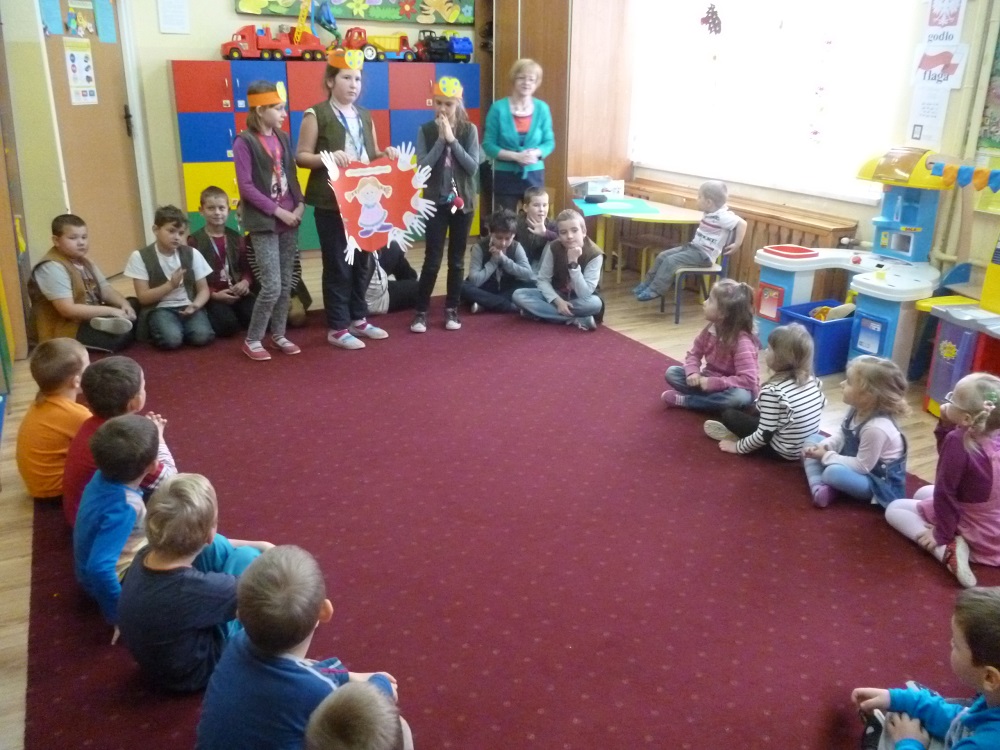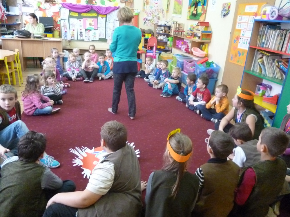 Celem naszej wizyty było kształtowanie postaw koleżeńskich, pogłębienie przyjaznych stosunków między dziećmi w różnym wieku oraz umiejętne nawiązywanie współpracy w grupie.