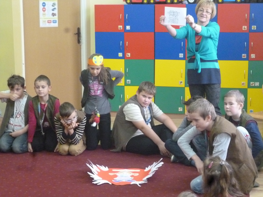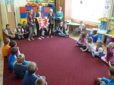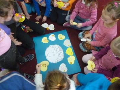 W ramach Dnia Życzliwości i Pozdrowień uczniowie klasy III udali się na warsztatowe zajęcia do najmłodszych - przedszkolaków. Dzieci uczestniczyły w zabawach integrujących, wysłuchały krótkiego opowiadania o ,,Kisielowym Królestwie", a następnie wraz z uczniami wykonały plakat - ,,z sercowymi uśmiechami" dla bohatera bajki.