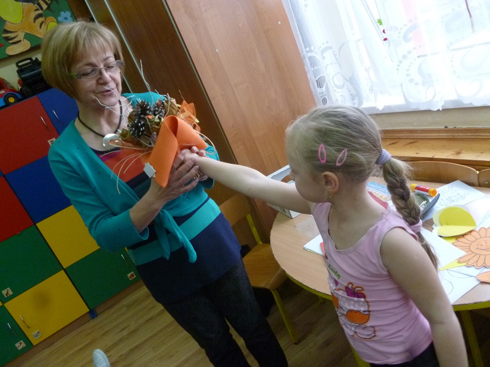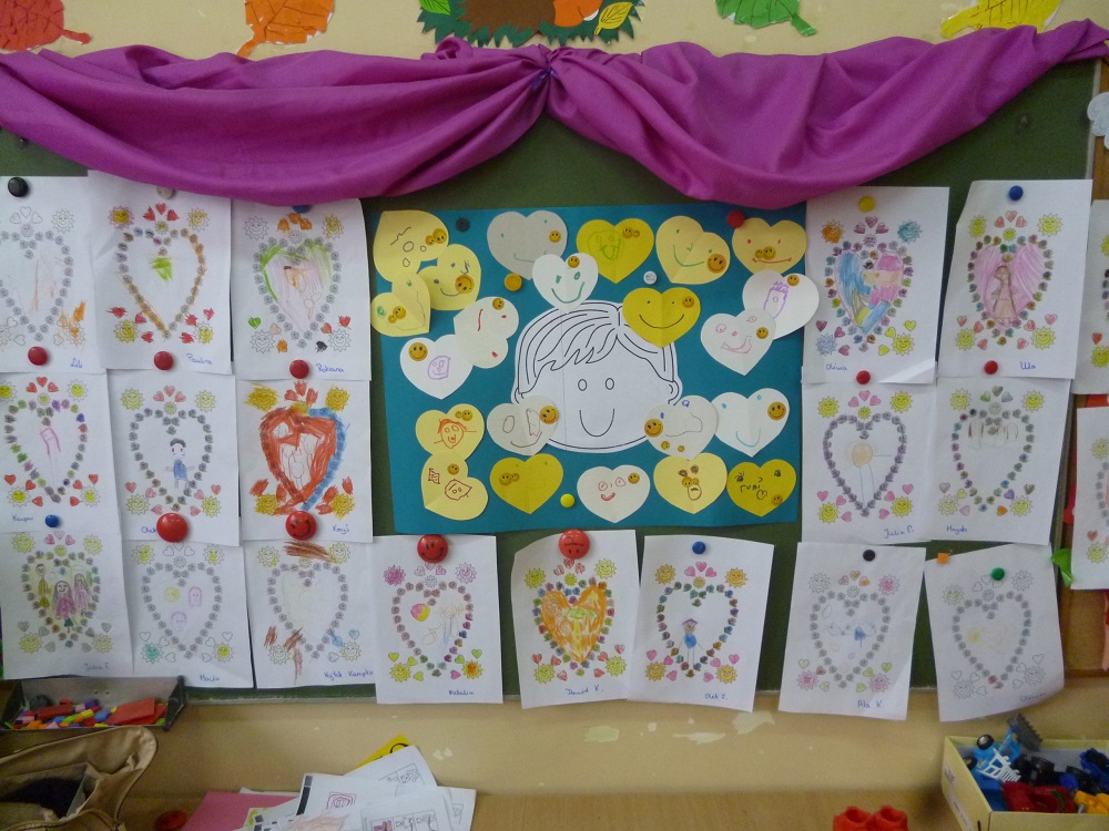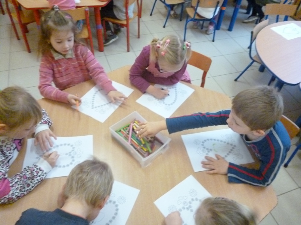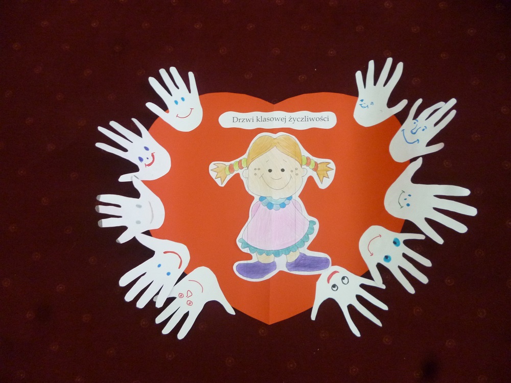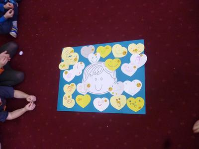 Na zakończenie wszyscy uczestnicy zajęć nawzajem obdarowali się miłymi uśmiechami i słodkimi niespodziankami. Przedszkolaki wykonały też laurki życzliwości dla wybranych osób - bliskich, kolegów, znajomych. Prace umieszczono w centralnym miejscu sali zajęć.