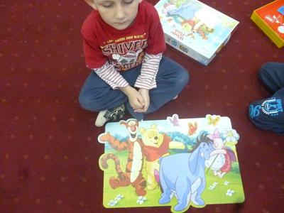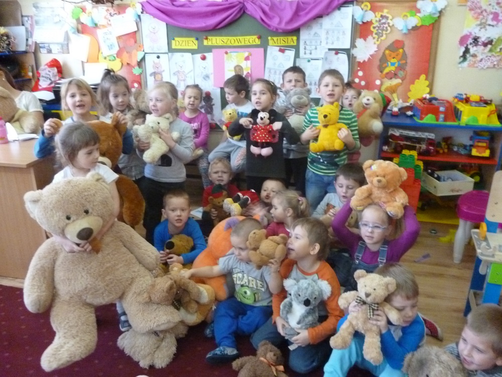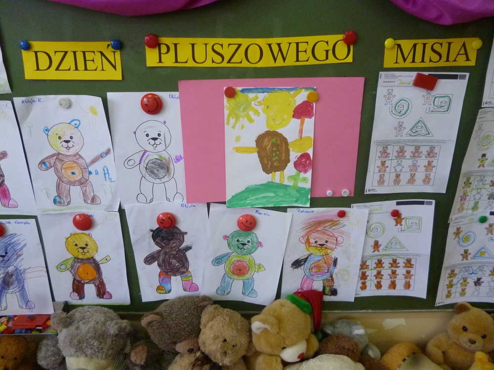 25 listopada obchodziliśmy Dzień Pluszowego Misia. Każde dziecko przyniosło w tym dniu maskotkę – misia. Przedszkolaki opowiadały o swoich pluszakach, słuchały wiersza Cz. Janczarskiego "Naprawimy misia", uczestniczyły w zabawie z elementem dramy - "Miś wesoły, miś smutny". Chętnie improwizowały ruchem przy piosence "Miś z laleczką". Dzieci ćwiczyły też spostrzegawczość składając w całość pocięte obrazki i wskazując różnice pomiędzy nimi oraz szukając ukrytego misia. Radośnie zrobiło się podczas zabawy kołowej "Miś", kiedy dzieci naśladowały jego gesty. Cały dzień misie były wiernymi towarzyszami zabaw w przedszkolu.