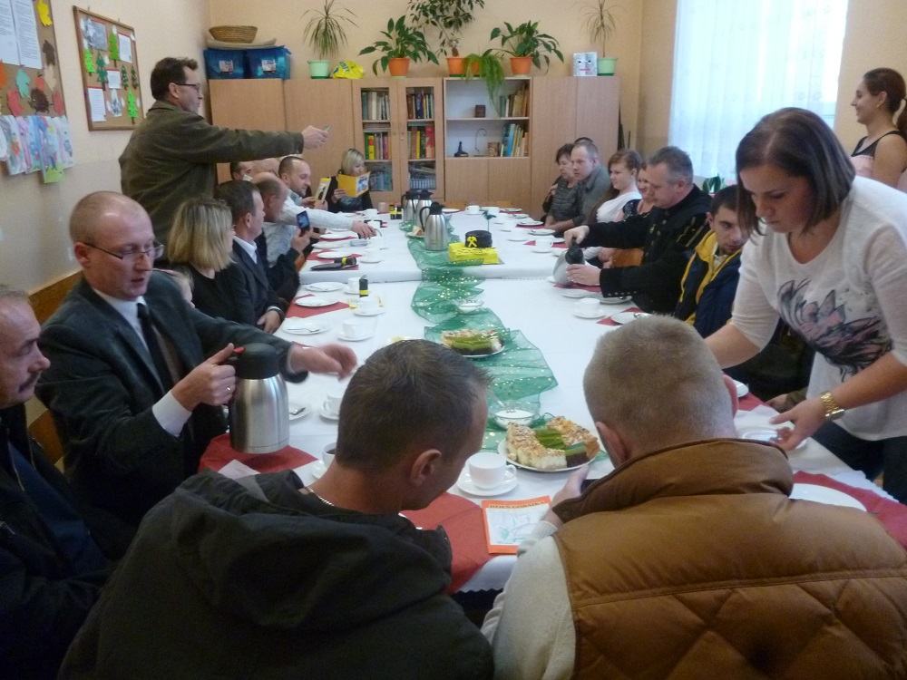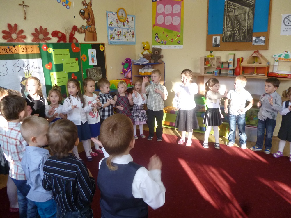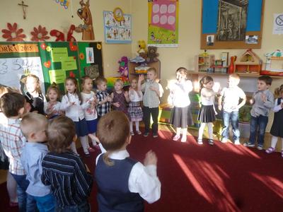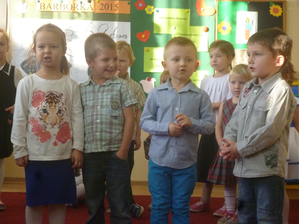 Tradycyjnie, jak co roku, 4 grudnia przedszkolaki z Rzuchowa uroczyście świętowały "Dzień Górnika". Z tej okazji zaprosiliśmy tatusiów, wujków i dziadków do naszego przedszkola, aby podziękować im za ciężką i niebezpieczną pracę pod ziemią. Nasz występ rozpoczęliśmy od pokazania zaproszonym gościom tego, czego od września dzieci nauczyły się w przedszkolu oraz podsumowania programu przedszkolnej edukacji antytytoniowej "CZYSTE POWIETRZE WOKÓŁ NAS". Następnie przedszkolaki zaprezentowały program artystyczny, składający się z piosenek i wierszyków oraz tańców śląskich. Po występach mali artyści złożyli górnikom życzenia, wręczyli własnoręcznie wykonane laurki oraz zaprosili ich na słodki poczęstunek. Nasze spotkanie z górnikami upłynęło nam w miłej i radosnej atmosferze.