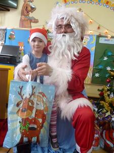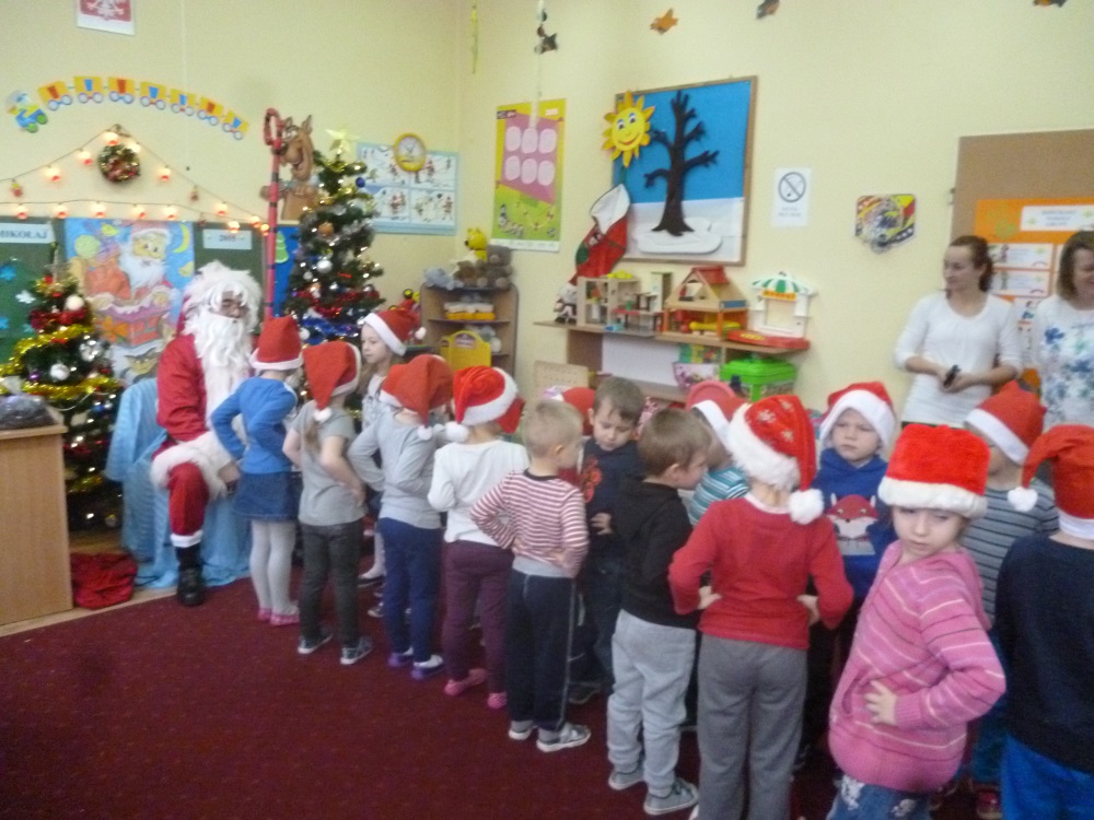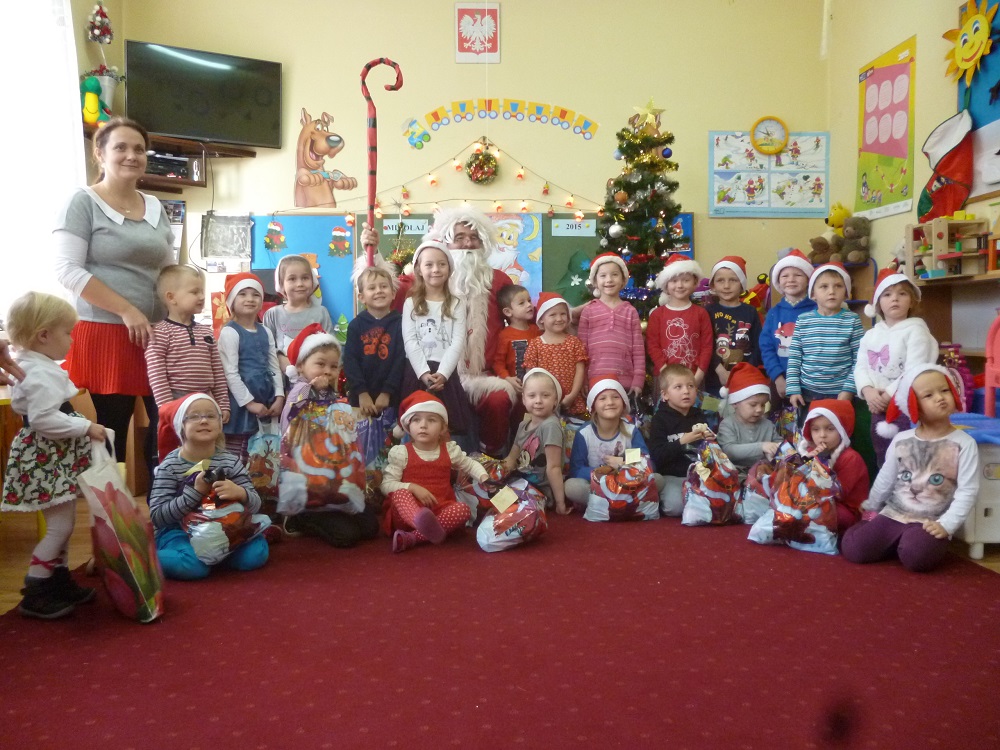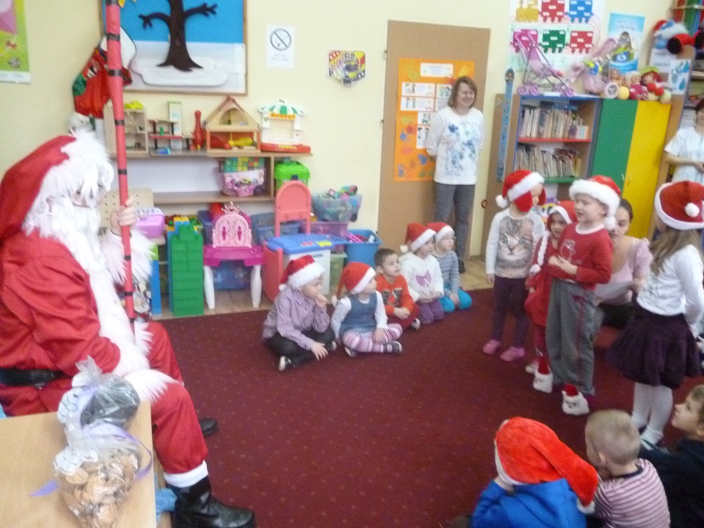 W poniedziałkowy ranek z workiem pełnym prezentów przybył do naszego przedszkola Święty Mikołaj. Dzieci z niecierpliwością oczekiwały wyjątkowego gościa i starannie się do tego spotkania przygotowały. Święty Mikołaj z przyjemnością wysłuchał piosenek, wierszyków oraz podziwiał tańce przedszkolaków. Następnie z wielkim zaciekawieniem wszyscy słuchaliśmy mikołajowych opowieści o Laponii, reniferach oraz o prezentach. Mieliśmy także okazję zobaczyć, co Mikołaj wręcza niedobrym dzieciom. Na szczęście okazało się, że wszystkie przedszkolaki z Rzuchowa są grzeczne i w nagrodę każde dziecko otrzymało śliczny prezent. Na zakończenie podziękowaliśmy Mikołajowi za wspaniałe podarki i zrobiliśmy sobie z nim pamiątkowe zdjęcie. Spotkanie ze Św. Mikołajem upłynęło nam w bardzo miłej i serdecznej atmosferze. W tym dniu nikt nie był smutny ani zawiedziony. Wszyscy świetnie się bawiliśmy!