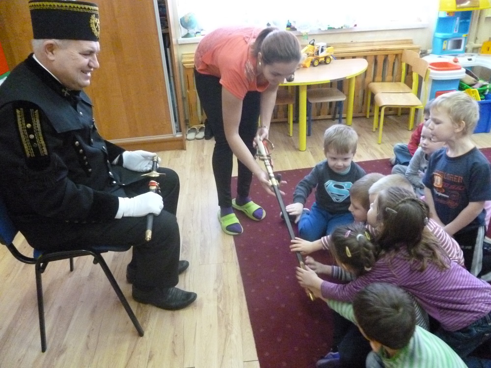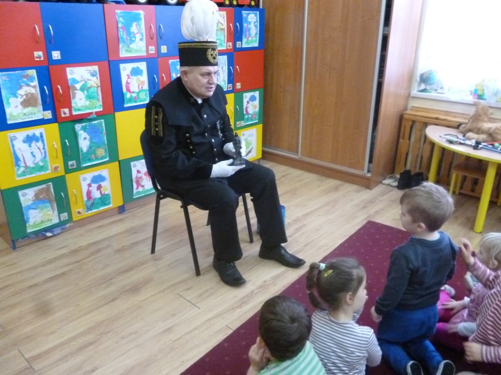 11 grudnia zaszczycił nas swoją obecnością górnik w stroju galowym pan Czesław Jenderko. Opowiedział dzieciom o trudach pracy w kopalni. Wyświetlił bardzo ciekawy film związany z historią powstania Kopalni Węgla Kamiennego Charlotte, a obecnie „KWK Rydułtowy – Anna”. Zaprezentował kordzik i szpadę górniczą. Podarował dzieciom kilofek, bryłę węgla oraz figurkę świętej Barbary. Dzieci serdecznie podziękowały oraz wręczyły laurkę.