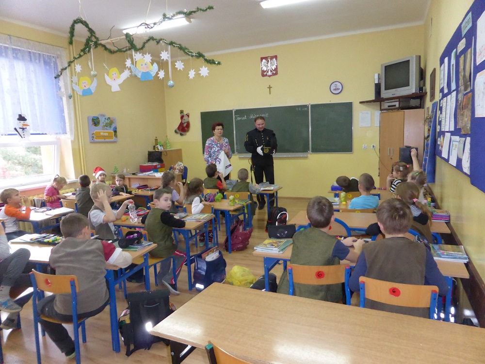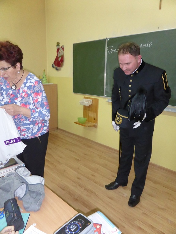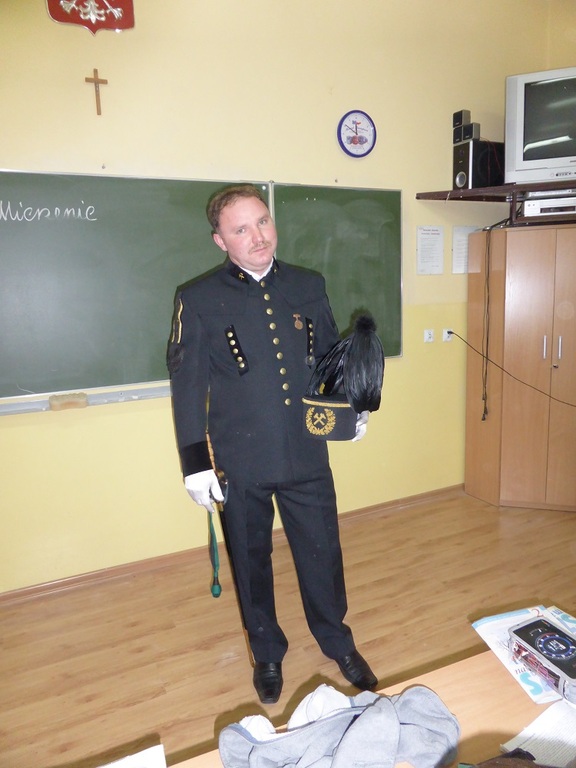 7 grudnia 2015 r. gościł na zajęciach w klasie II górnik – Pan Bogdan Hajduczek. Ubrany był w galowy strój górniczy. Zaproszony gość wiele opowiedział uczniom o trudnej, mozolnej i ciężkiej pracy w kopalni. Dzieci z wielkim zainteresowaniem słuchały i przyswoiły wiedzę na temat galowego munduru górniczego, rodzajów czako, ilości guzików w mundurze górnika, szpady górniczej .