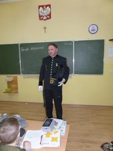 Na koniec spotkania zacny gość zadawał uczniom pytania, na które dzieci bardzo dobrze odpowiadały i w nagrodę otrzymały pyszne słodkości .
