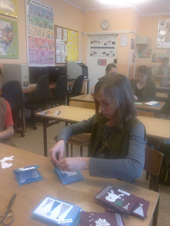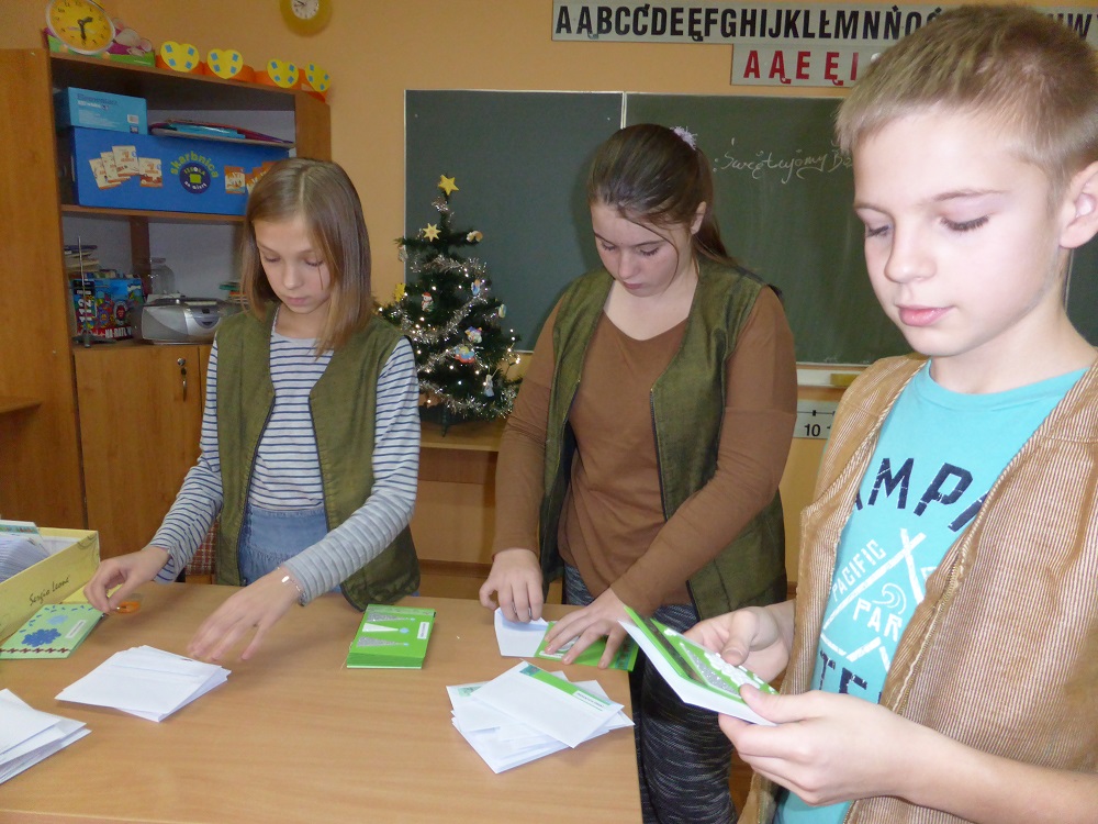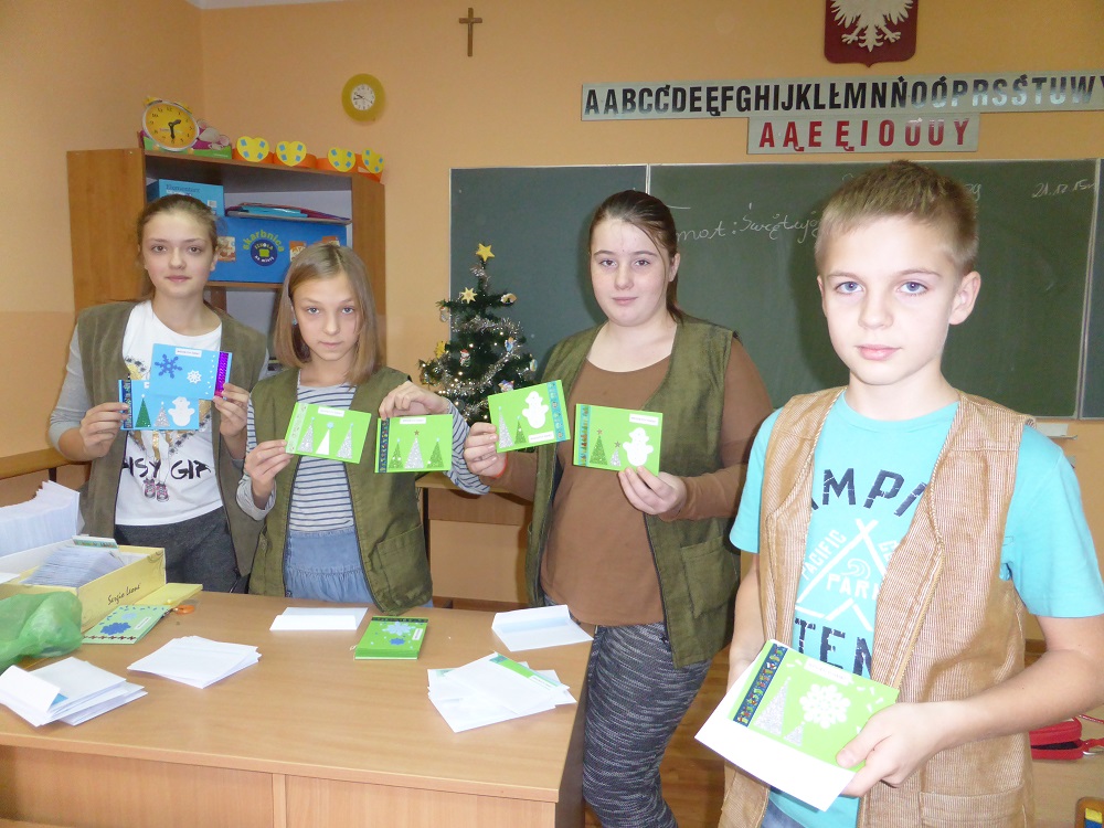 Akcje te już od lat cieszą się zainteresowaniem i dużym zaangażowaniem ze strony dzieci naszej szkoły. Przed samymi świętami uczniowie - ochotnicy z radosnymi życzeniami zaniosą kartki bliskim, starszym i znajomym, którzy co roku ze świątecznym nastojem przyjmują "dary dziecięcych serc".
