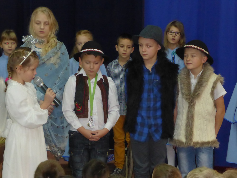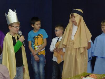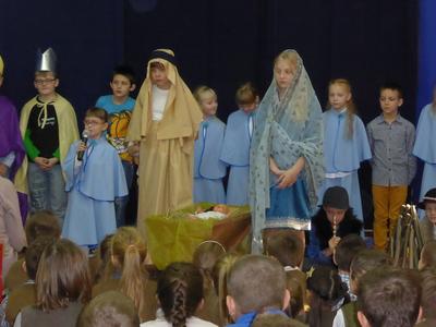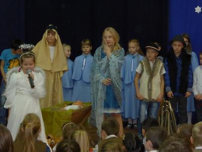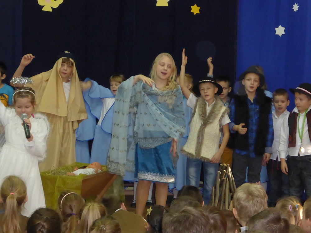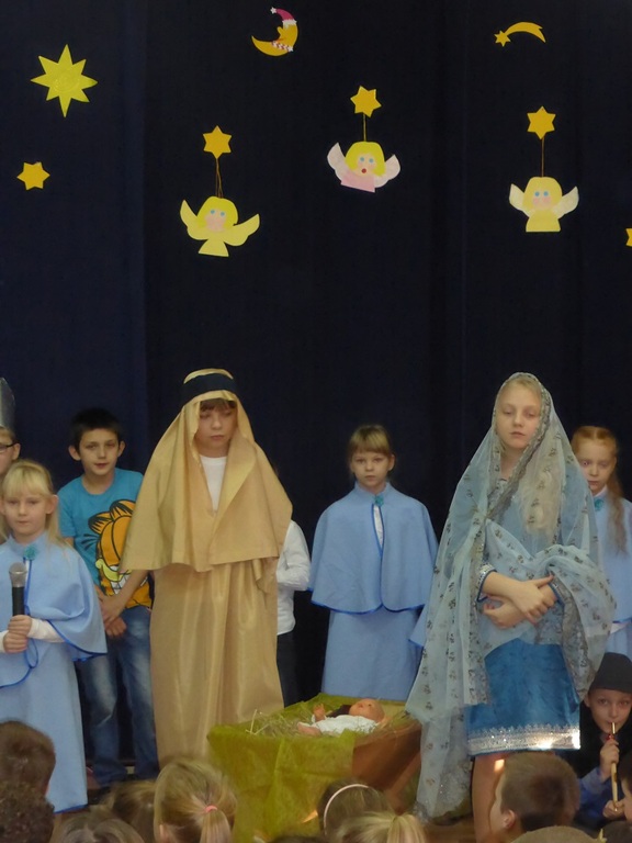22 grudnia 2015 r. nasi uczniowie przedstawili jasełka pt. „Kolęda na Ziemi” . W przedstawieniu brali udział uczniowie z kl.II i V . Głównym tematem jasełek były narodziny małego Jezusa w Betlejem, pokłon Trzech Króli, odwiedziny pasterzy i aniołów. Dzieci ubrane były w piękne stroje. Jasełka przeplatane były tradycyjnymi polskimi kolędami śpiewanymi przez uczniów.