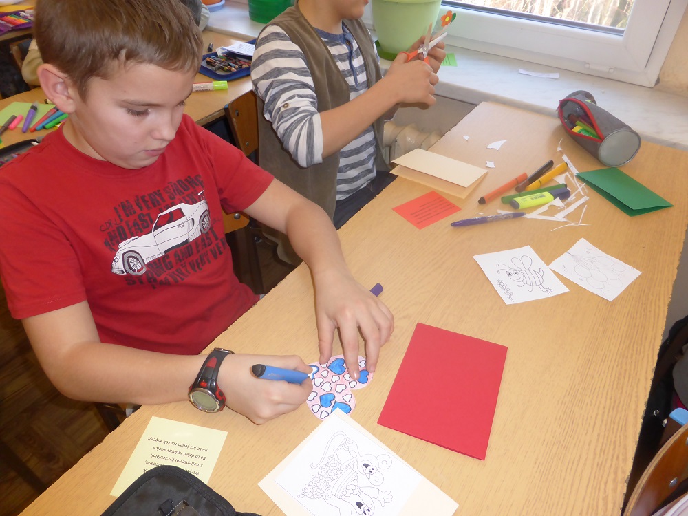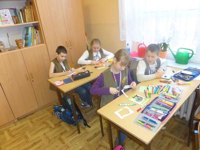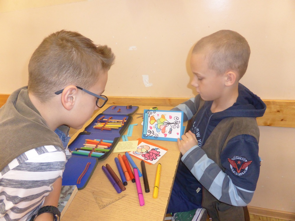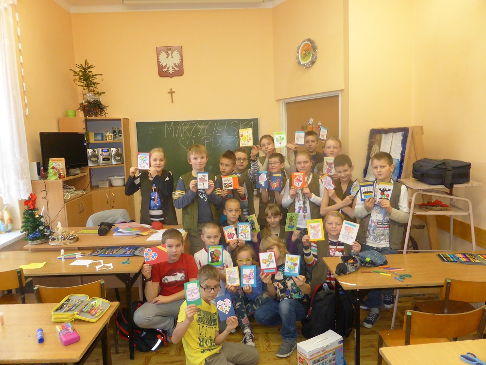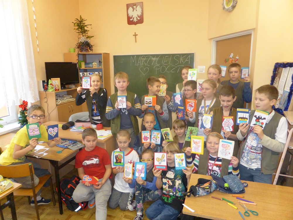 Już tradycją naszej szkoły jest pisanie kartek i listów do podopiecznych „Marzycielskiej Poczty”. Odrobinę dobra tym razem chcieli przekazać uczniowie klasy IV wykonując wspaniałe kartki dla Kacpra, Oliwii, Nikoli i Patrycji, którzy wkrótce obchodzić będą swoje urodziny. Po zapoznaniu się z profilami dzieci uczniowie sami zadecydowali do kogo chcą napisać życzenia oraz słowa otuchy w tej trudnej walce z chorobą. Akcja pisania kartek i listów cieszy się zawsze dużym zainteresowaniem, szczególnie cenne jest to, że uczniowie mają szansę uwrażliwić się na los i krzywdę innych oraz w taki prosty i niewymagający dużego wysiłku sposób mogą wywołać uśmiech i radość na twarzach swoich rówieśników.