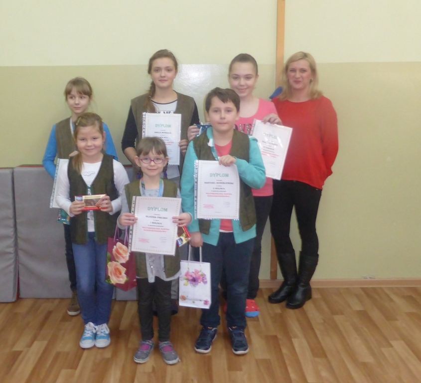 Uczniowie naszej szkoły wzięli udział w gminnym konkursie na najpiękniejszą kartkę bożonarodzeniową w języku angielskim i niemieckim organizowanym przez Szkołę Podstawową w Pogrzebieniu. Celem konkursu było popularyzowanie wśród uczniów tradycji świątecznych, rozwijanie ich zdolności plastycznych oraz językowych w zakresie języka angielskiego i niemieckiego. Klaudia Pieczka z klasy drugiej zdobyła I miejsce, a Klaudia Depta III miejsce za kartkę bożonarodzeniową w języku angielskim. Laureaci konkursu, którzy wykonali kartkę świąteczną w języku niemieckim to: Bartosz Jędrzejewski, uczeń klasy trzeciej, zajął II miejsce, Ewa Adamczyk z klasy czwartej – I miejsce oraz Emila Morgała - uczennica klasy szóstej - II miejsce. Wyróżnienia otrzymały Kinga Seget oraz Klaudia Pieczka. Laureatom serdecznie gratulujemy i życzymy dalszych sukcesów.