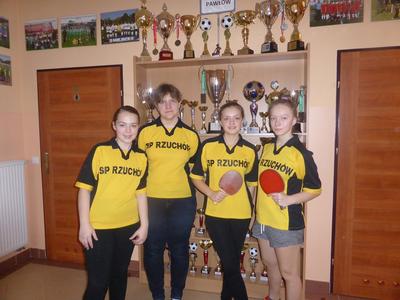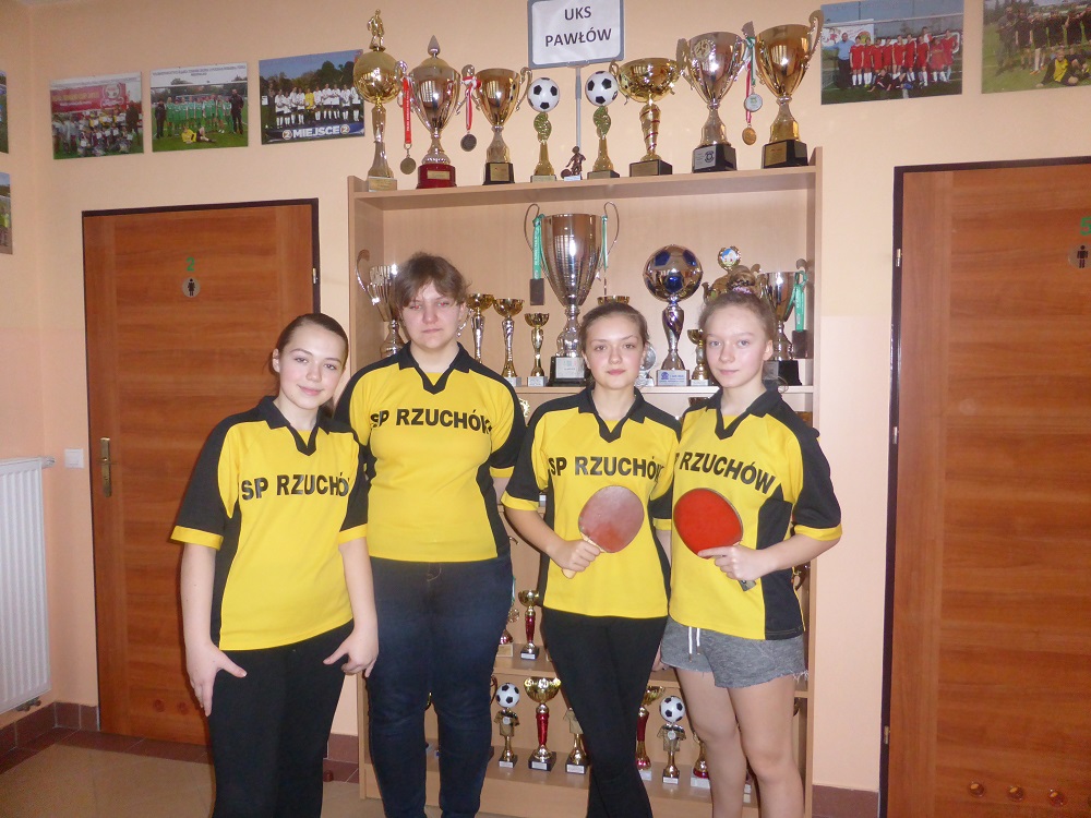 10 lutego 2016 r. w hali Zespołu Szkolno- Przedszkolnego w Pawłowie rozegrał się finał powiatu raciborskiego w tenisie stołowym szkół podstawowych. 40 najlepszych tenisistów z gmin walczyło o zwycięstwo indywidualne i drużynowe, które dawało przepustkę do gry w rozgrywkach rejonowych. Dziewczyny z Rzuchowa drużynowo wywalczyły IV miejsce, a zmagały się z drużynami m.in. z Pawłowa, Szonowic, Tworkowa oraz Krzanowic. Indywidualnie na 19 zawodniczek Natalia Grycman znalazła się na IX miejscu, za nią Paulina Ficke na XI miejscu, Emilia Morgała była XIII. Czwartą naszą zawodniczką była Klaudia Depta. Dziewczyny świetnie się spisały, gratulujemy i życzymy im dalszych sukcesów sportowych, tych małych i tych większych.