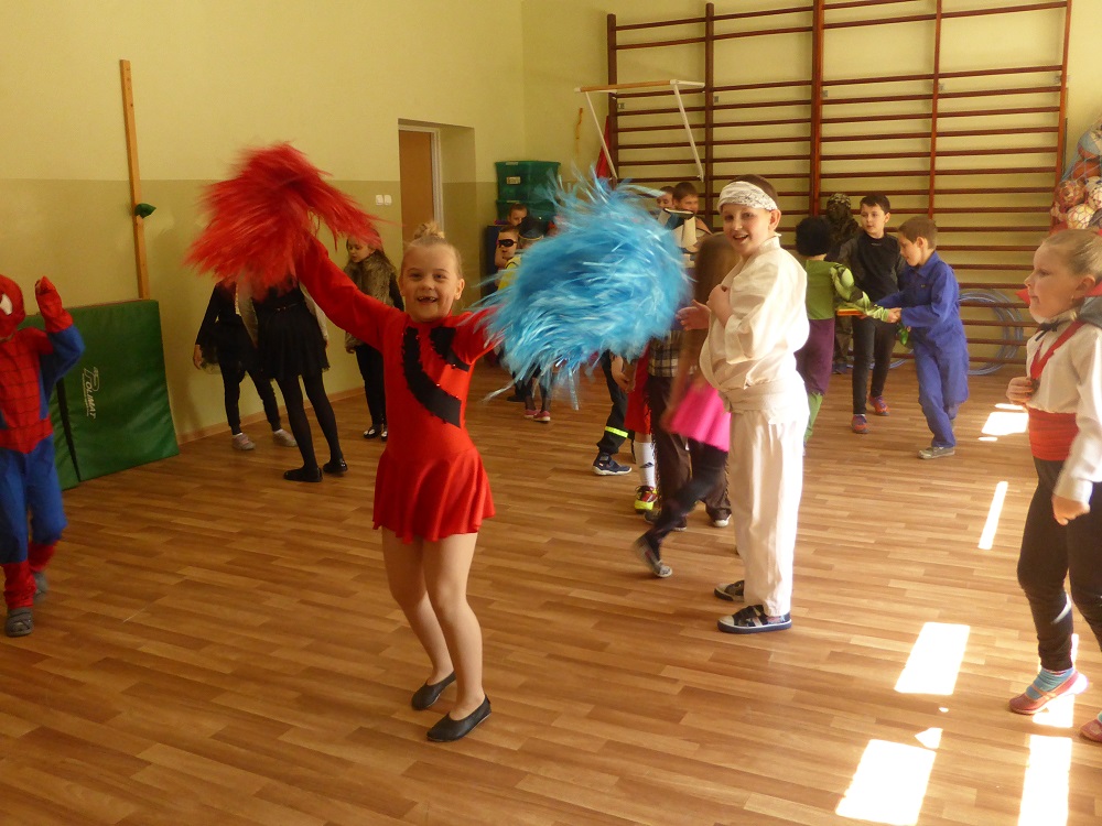 Uczniowie klasy I i III brali udział w wiosennym balu warzywno - owocowym. Dzieci starannie przygotowały ciekawe i pomysłowe kostiumy, które zostały przez nie zaprezentowane we wspólnym tańcu w kole. Na uczestników zabawy czekały też liczne konkursy zdrowotne, kwizy i zagadki, do udziału w których nie trzeba było nikogo zachęcać. Dzieci bawiły się znakomicie, żywiołowo poruszały się we wszystkich tańcach. Każdy uczestnik otrzymał drobne upominki i nagrody pocieszenia, a w czasie przerwy uczniowie zjedli słodki poczęstunek przygotowany przez Radę Rodziców z poszczególnych klas. Po skończonej imprezie w wesołych i radosnych nastrojach dzieci udały się do domu.