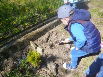 22 kwietnia obchodziliśmy Międzynarodowy Dzień Ziemi. Przy tej okazji dzieci mogły poznać zagrożenia dla środowiska przyrodniczego wynikające z niszczycielskiej działalności ludzi. Dzieci wykonały prace plastyczne pod tytułem" Dzień Ziemi", obejrzały film o tematyce proekologicznej, sprzątały nasz przedszkolny plac zabaw oraz ogród. W tym dniu dzieci przyniosły do przedszkola różne ozdobne rośliny, które posadziły na grządce. A wcześniej wybrały się na spacer do ogrodu babci Basi, aby zapoznać się z różnymi ogrodowymi roślinami. Dzieci miały też okazję podziwiać piękne zawilce i pierwiosnki rosnące na poboczach dróg. Oczywiście dowiedziały się tego, że są to kwiaty chronione. Mamy nadzieję, że dzieci będą rozumiały konieczność ochrony naszej Żywicielki - Ziemi.