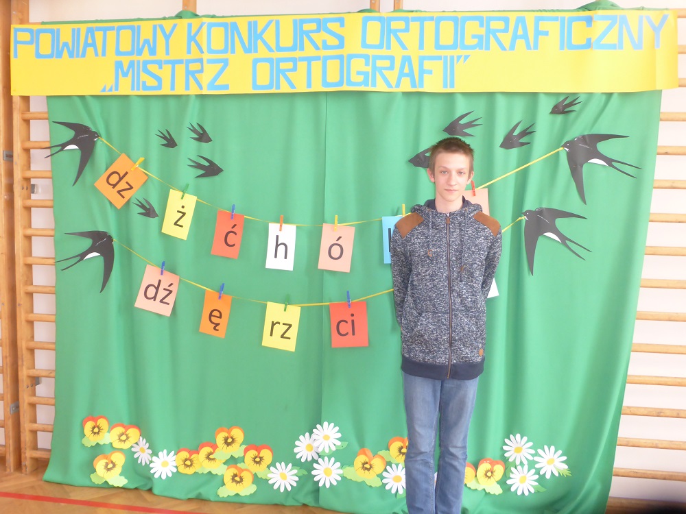 Naszą szkołę reprezentował uczeń klasy szóstej Łukasz Ziental, który został wytypowany do konkursu w drodze eliminacji szkolnych. W tym roku o tytuł „Szkolnego Mistrza Ortografii” zmagało się sporo uczniów z klas IV – VI. Uczniowie pisali tekst zeszłorocznego konkursowego dyktanda. W rozgrywkach szkolnych najlepsi okazali się chłopcy – Łukasz Ziental z klasy szóstej i Michał Kotewicz z klasy piątej.