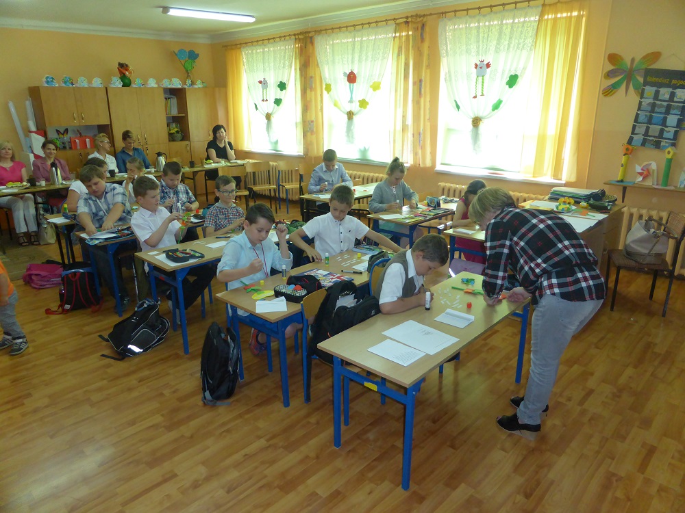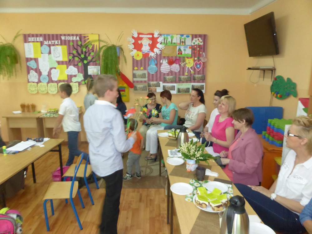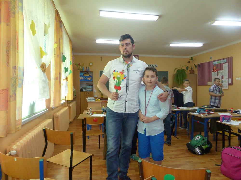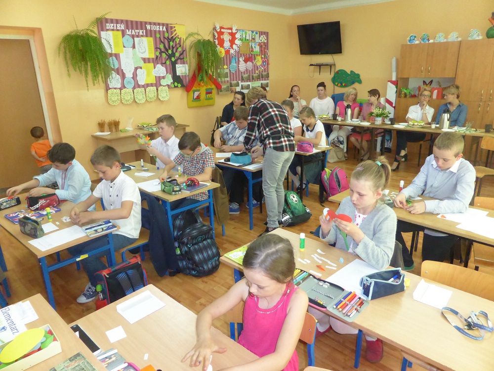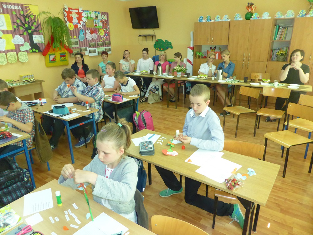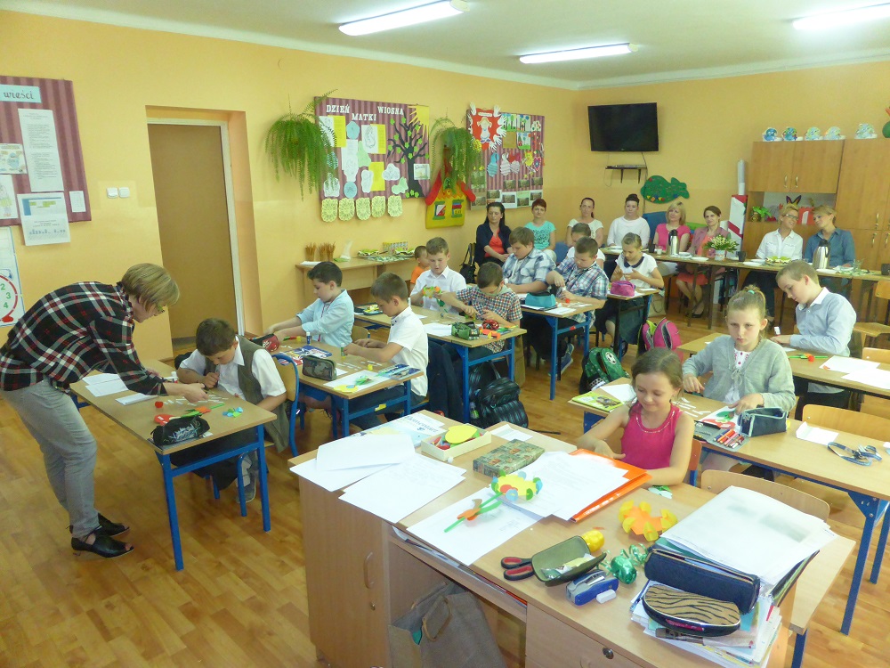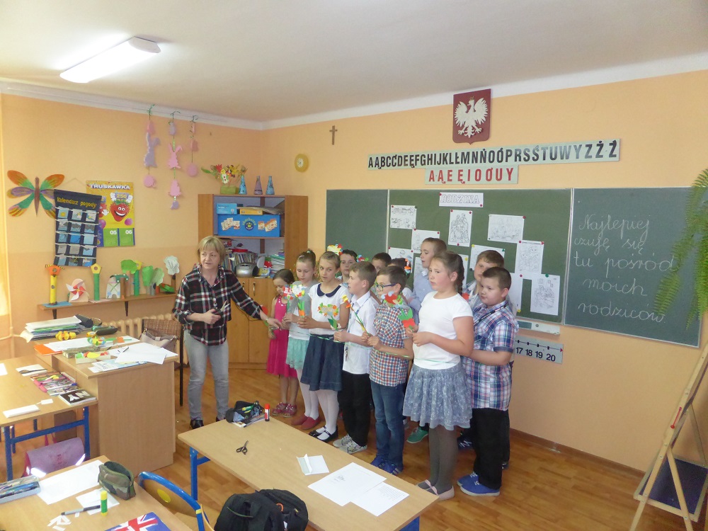 Maj i czerwiec to miesiące, w których obchodzimy bliskie wszystkim święta rodzinne - Dzień Matki, Dzień Dziecka i Dzień Ojca. W ramach współpracy szkoły ze środowiskiem rodzinnym oraz w związku ze zbliżającymi się świętami przeprowadzona została w klasie III, z udziałem rodziców, lekcja otwarta. W czasie zajęć uczniowie w podniosłym i radosnym nastroju starali się pokazać od najlepszej strony. Były życzenia, piosenki, poczęstunek oraz własnoręcznie wykonane prezenty - "bukiet klasowych uczuć", który każdy z zaproszonych rodziców na zakończenie lekcji otrzymał. Podczas zajęć zastosowano zróżnicowane, indywidualne i grupowe formy pracy oraz metody - słowne, problemowe, czynnościowe i zajęć praktycznych. Dzieci w swoich wypowiedziach nawiązywały do najbliższych tradycji i ich roli w życiu rodziny, zwracały uwagę na przywiązanie, ścisły związek uczuciowy z bliskimi, dostrzegały swoją rolę i przynależność do rodziny. Poprzez swoje działania wyrażały uczucie miłości, szacunku i wdzięczności za otrzymane wychowanie, troskę i opiekę. Umiejętnie dostrzegały i wyodrębniały to, co w życiu ważne i istotne - bezinteresowna pomoc, wdzięczność i okazywanie szacunku w każdej sytuacji. Taka forma spotkania miała dostarczyć szczególnych i niepowtarzalnych wrażeń zarówno dzieciom jak i rodzicom, a pociechy w niekonwencjonalny sposób okazały i wyraziły swoje uczucia wobec najbliższych.