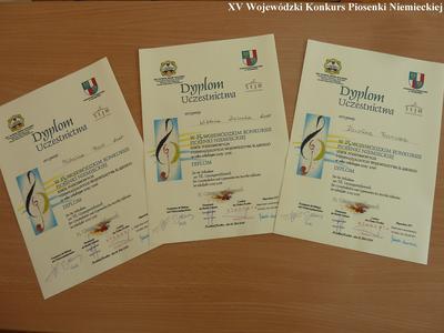 18 maja 2016r. w Młodzieżowym Domu Kultury w Raciborzu odbył się XV Wojewódzki Konkurs Piosenki Niemieckiej. Organizatorem Konkursu było Towarzystwo Społeczno-Kulturalne Niemców Województwa Śląskiego z siedzibą w Raciborzu. Uczniowie mogli wystąpić jako soliści bądź w duecie i musieli wykonać utwór w języku niemieckim. Jury oceniało przede wszystkim umiejętności językowe oraz umiejętności wokalne wykonawców, a następnie stopień trudności wykonywanych utworów, dobór repertuaru i ogólny wyraz artystyczny. Uczestników oceniano w trzech kategoriach: