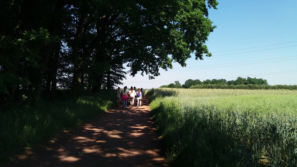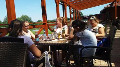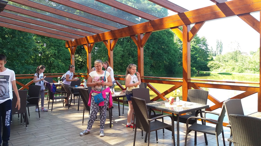 Podążaliśmy leśnym szlakiem zachwycając się pięknymi widokami. Ładna pogoda, słoneczko i wiosenna zieleń zachęcały do wysiłku. Kiedy dotarliśmy do celu naszej wędrówki, zamówiliśmy pieczone rybki. Później poszliśmy pozwiedzać okolicę, która urzekła nas wspaniałym krajobrazem. Następnie z uśmiechami na twarzach wróciliśmy do swoich domów.