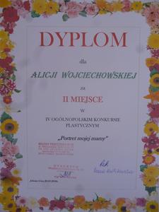 W maju Przedszkole w Rzuchowie wzięło udział w IV Ogólnopolskim Konkursie Plastycznym pt.: "Portret mojej mamy" zorganizowanym przez Miejskie Przedszkole nr 13 w Jeleniej Górze. Celem konkursu było rozwijanie kreatywności dzieci poprzez twórczość plastyczną oraz promowanie spontanicznej ekspresji plastycznej dziecka. Na konkurs wpłynęło 337 prac ze 103 placówek z całej Polski. Jury biorąc pod uwagę przede wszystkim estetykę i samodzielność wykonania prac przez dzieci wyłoniła laureatów w poszczególnych grupach wiekowych. Nasze przedszkole zdobyło w tym konkursie II miejsce. Prace konkursową wykonały Alicja Wojciechowska, której serdecznie gratulujemy. Ponadto miło nam poinformować, że w czerwcu Magdalena Knura i Jakub Ratajewski otrzymali dyplomy za wzięcie udziału w konkursie „Życie w akwarium”, zaś Urszula Stokłosa za wzięcie udziału w konkursie „Dbajmy o naszą planetę”. Serdecznie wszystkim dzieciom gratulujemy i życzymy dalszych sukcesów.