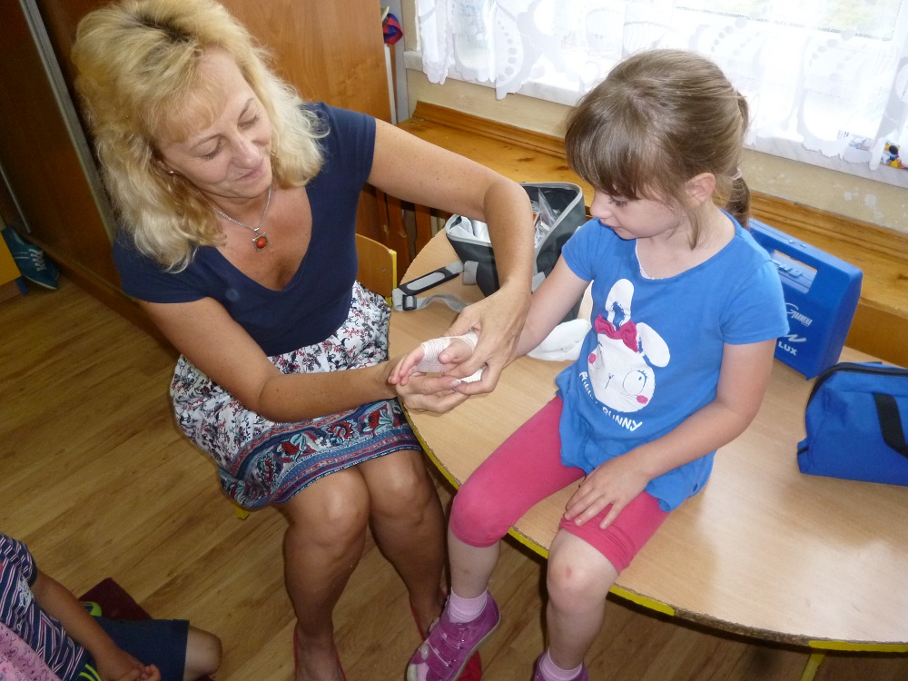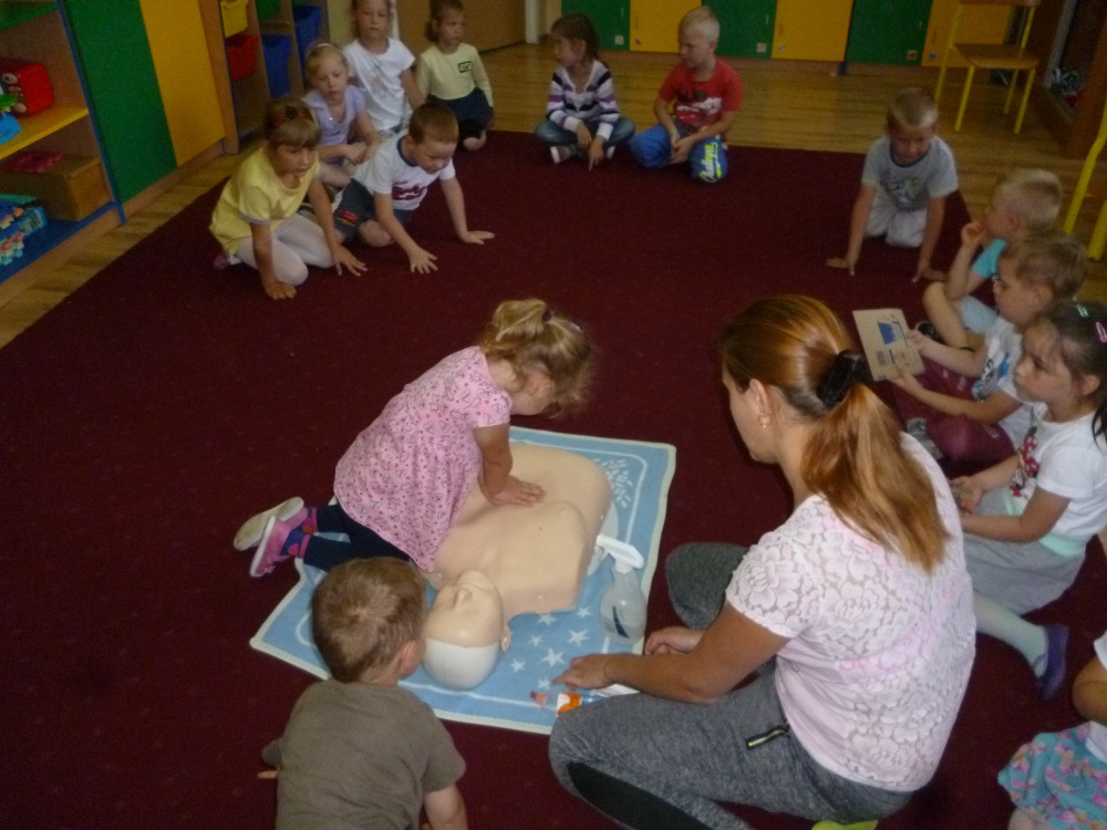 16 czerwca przedszkolaki z Rzuchowa wzięły udział w zajęciach „Bezpieczeństwo to podstawa”, które poprowadziła higienistka szkolna. Podczas spotkania omówiliśmy sytuacje zagrażające człowiekowi, które mogą się pojawić w życiu codziennym oraz przypomnieliśmy sobie numery alarmowe. Pani Iza zaprezentowała nam także opatrywanie ran: bandażowanie. Następnie dzieci mogły samodzielnie wykazać się praktyczną znajomością udzielania pierwszej pomocy na fantomie. Spotkanie z panią higienistką upłynęło nam w miłej atmosferze i z pewnością wiedza zdobyta w trakcie tych zajęć pozostanie na długo w pamięci naszych przedszkolaków. Marta Godawa