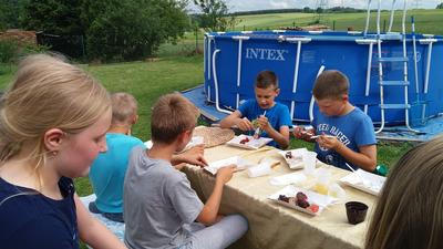 W takim właśnie już wakacyjnym nastroju dziewczynki i chłopcy z klasy 4 spotkali się na wspólnym ognisku klasowym. Ognisko oczywiście zorganizowały niezastąpione mamy, a gościny użyczyli nam państwo Pieła, którym nie straszna była niezwykle żywiołowa grupa jedenastolatków. Wszyscy wspaniale się bawili!Mirosława Twardzik