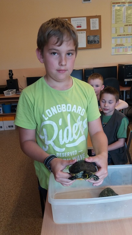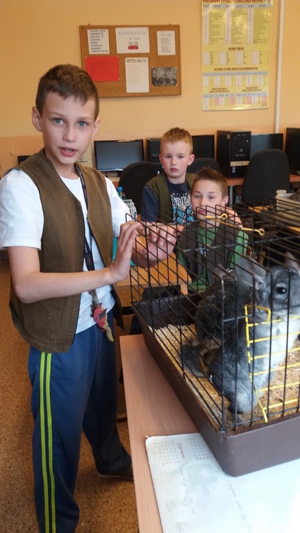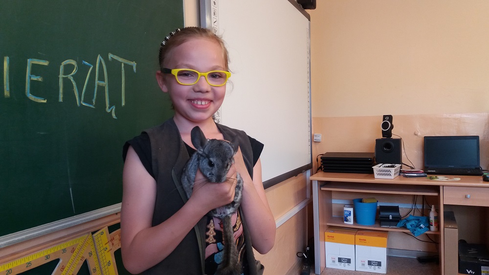 Uczniowie klasy 4 okazali się wielkimi miłośnikami zwierząt! Z własnej inicjatywy dzieci przygotowały lekcję wychowawczą, na której zaprezentowały swoich pupili. Niektórzy nawet zdobyli się na trud pokazania zwierzątek na żywo. I tak w szkole odwiedziły nas: szynszyle, żółw, chomiki oraz rybki. Dowiedzieliśmy się dużo różnych ciekawostek, np.: jak tresować psy czy konie, jakie są zwyczaje kotów, itp. Lekcja wywołała wiele pozytywnych emocji!