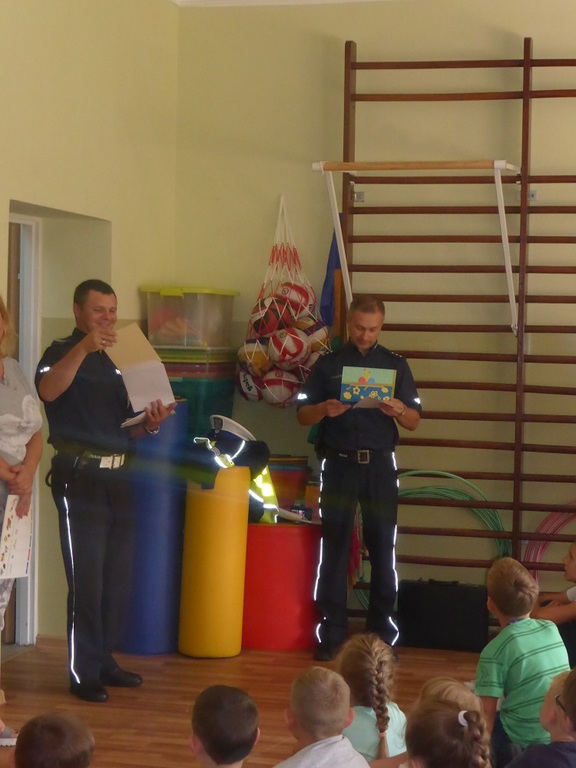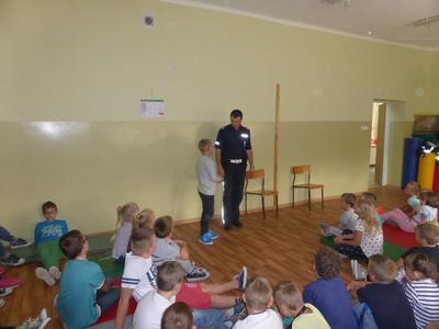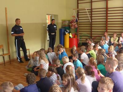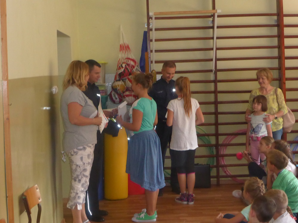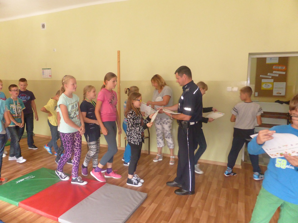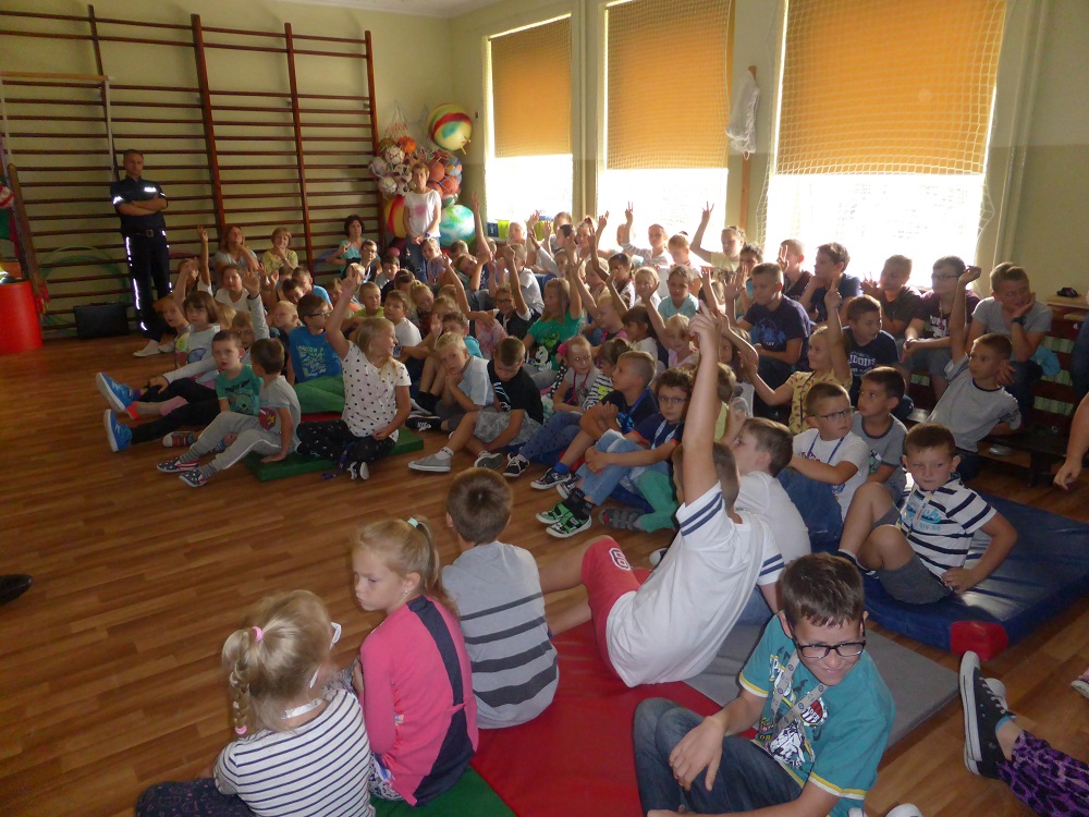 W środę 7.09.2016 r. gościliśmy w Szkole Podstawowej w Rzuchowie przedstawicieli Komendy Powiatowej Policji w Raciborzu. Policjanci starali się przypomnieć uczniom zasady bezpiecznego poruszania się po drodze, właściwego korzystania z przejść dla pieszych, chodników i dróg rowerowych. Zwrócili również uwagę na przepisy dotyczące przewożenia dzieci, przede wszystkim o obowiązkowych fotelikach i konieczności zapinania pasów bezpieczeństwa. Pogadanka miała charakter aktywny, policjanci zadawali uczniom pytania dotyczące poruszanych problemów, a sami uczniowie mieli możliwość wcielenia się w rolę pieszego na pasach i zaprezentowania prawidłowego przechodzenia przez jezdnię oraz wykonania scenki zgłoszenia telefonicznego w sytuacji zagrożenia. Policjanci poruszyli także problem bezpieczeństwa w stosunku do nieznanych nam osób, jak również ostrzegli przez narkotykami i dopalaczami informując, że w polskim prawie wszystko, co jest z nimi związane, czyli posiadanie, zażywanie i sprzedawanie, jest nielegalne, a eksperymentowanie z takimi substancjami może kosztować zdrowie i życie. Na koniec wszyscy uczniowie dostali plany lekcji, które również przypominały o właściwych zachowaniach. Takie spotkania zawsze cieszą się dużym zainteresowaniem ze strony dzieci, a przy okazji uczą właściwych postaw i dbania o własne bezpieczeństwo.