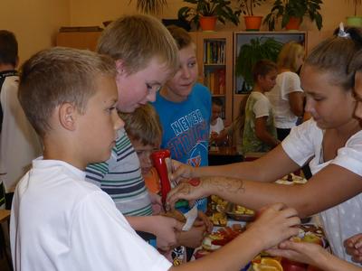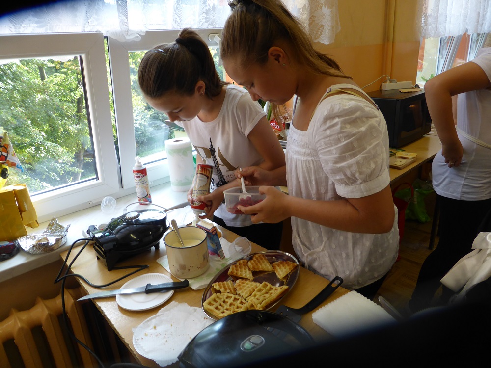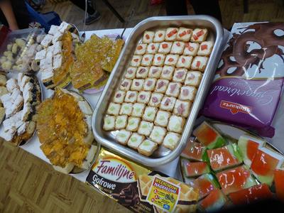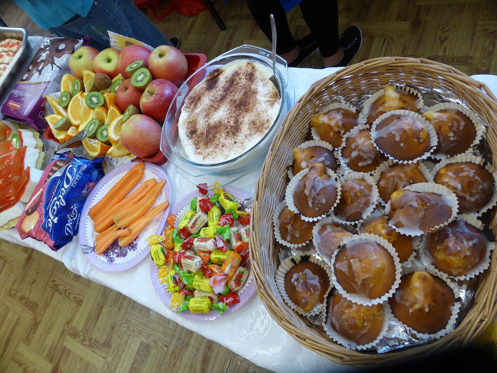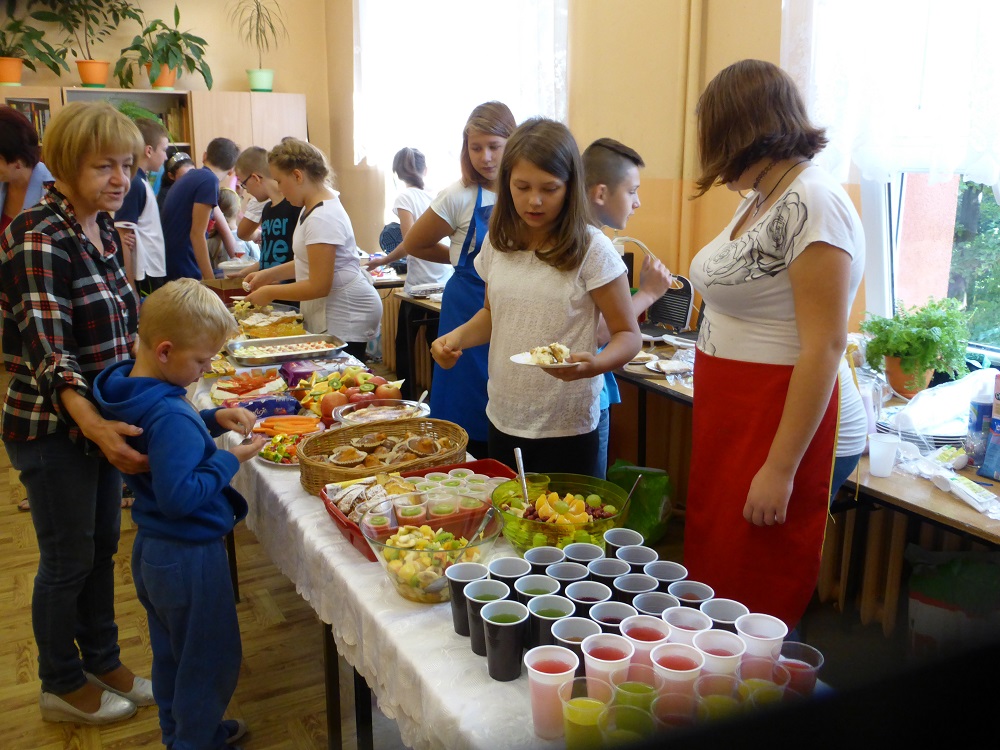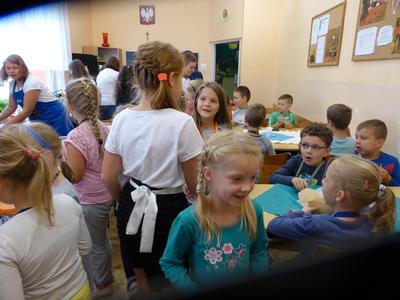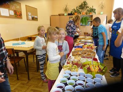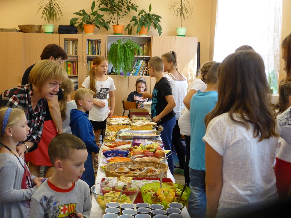 W środę 28 września uczniowie klasy szóstej wraz z wychowawcą przygotowali klasową kawiarenkę, do której zaprosili wszystkich młodszych kolegów - przedszkolaków i uczniów klas I – V. Szóstoklasiści przy pomocy rodziców przygotowali szereg potraw. Odwiedzający kawiarenkę goście mogli spróbować kanapek, gofrów, galaretek, ciast, ciasteczek, koktajli, soków owocowych, sałatek z owoców i innych smakołyków. Najstarsi uczniowie szkoły świetnie sprawdzili się w roli kucharzy i kelnerów. Rodzicom szóstoklasistów serdecznie dziękujemy za pomoc w organizacji szkolnej kawiarenki.