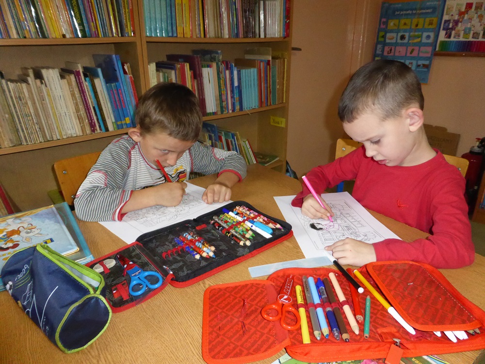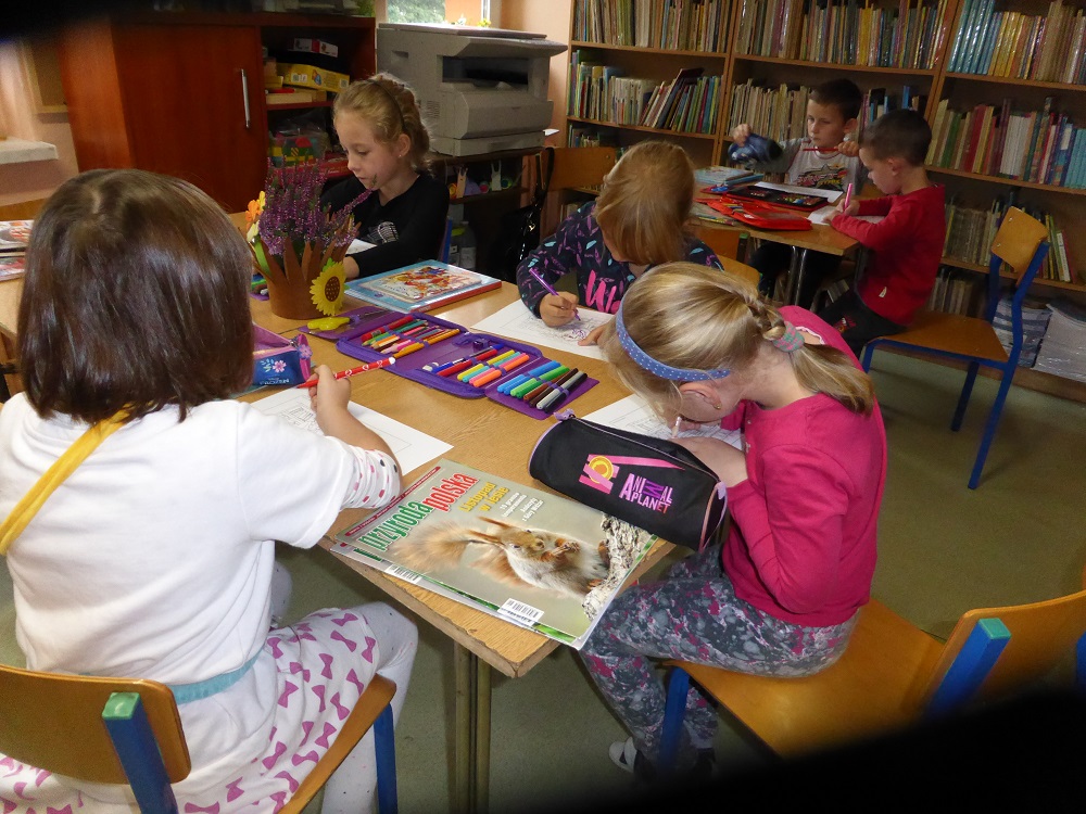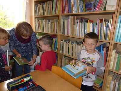 3 października 2016r. uczniowie klasy pierwszej uczestniczyli w pierwszej lekcji bibliotecznej. Dzieci poznały szkolną bibliotekę, zapoznały się z regulaminem biblioteki i czytelni, dowiedziały się, jak korzystać ze zbiorów bibliotecznych oraz co mogą wypożyczyć. Pierwszoklasiści wypożyczyli pierwsze książeczki. Sami próbowali wybrać dla siebie książeczki znajdujące się na półkach z lekturami dla najmłodszych czytelników. Następnie uczniowie słuchali wierszy, które przeczytała im bibliotekarka oraz wysłuchali słuchowiska o Śpiącej Królewnie. Uczniowie klasy pierwszej wykonali prace plastyczne związane z biblioteką. Najmłodsi uczniowie szkoły obiecali, że będą często odwiedzać szkolną bibliotekę.