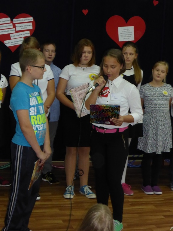 Tradycyjnie po uroczystej akademii miał miejsce poczęstunek i rozdanie serc z cytatem Jana Pawła II "Bądźcie świadkami miłosierdzia".