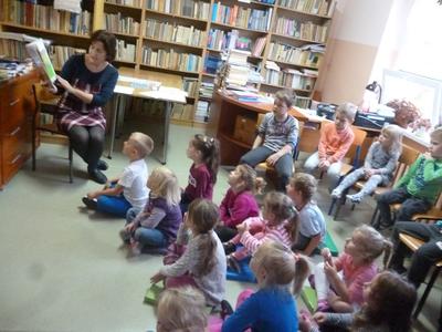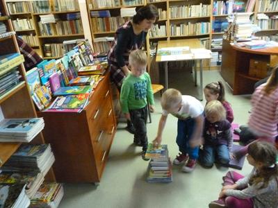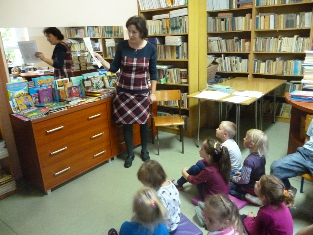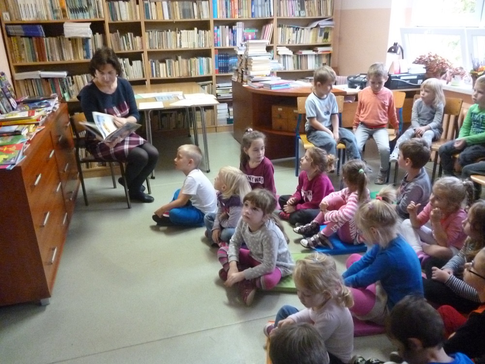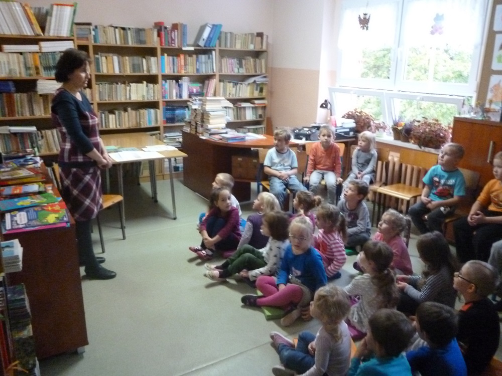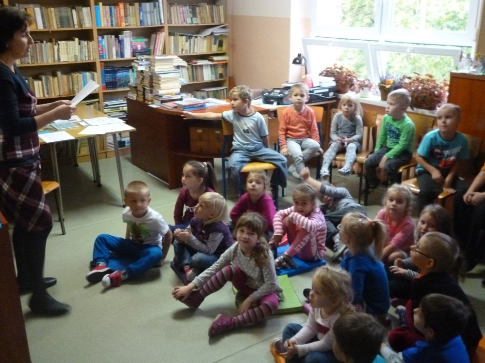 W środę 19 października przedszkolaki z Rzuchowa odwiedziły bibliotekę szkolną. W bibliotece przywitała nas pani Tatiana, która w przystępny sposób opowiedziała nam, na czym polega praca bibliotekarza oraz jak należy obchodzić się z książkami. Przeczytała także bajkę „Żółw i zając” oraz wiersz o tym, iż zawsze należy zachowywać się kulturalnie i grzecznie, a będzie się lubianym przez wszystkich. Przedszkolaki z zainteresowaniem wysłuchały utworów i chętnie udzielały odpowiedzi na zadawane pytania. Następnie dzieci przeglądały książki z biblioteki, a potem ułożyły z nich wieżę, która uzmysłowiła nam, że im więcej czytamy, tym stajemy się mądrzejsi. Na zakończenie pani bibliotekarka wręczyła przedszkolakom wydrukowane kolorowanki oraz zakładki do książek. Spotkanie w bibliotece bardzo się wszystkim podobało i dostarczyło wielu cennych informacji i wrażeń.Marta Godawa